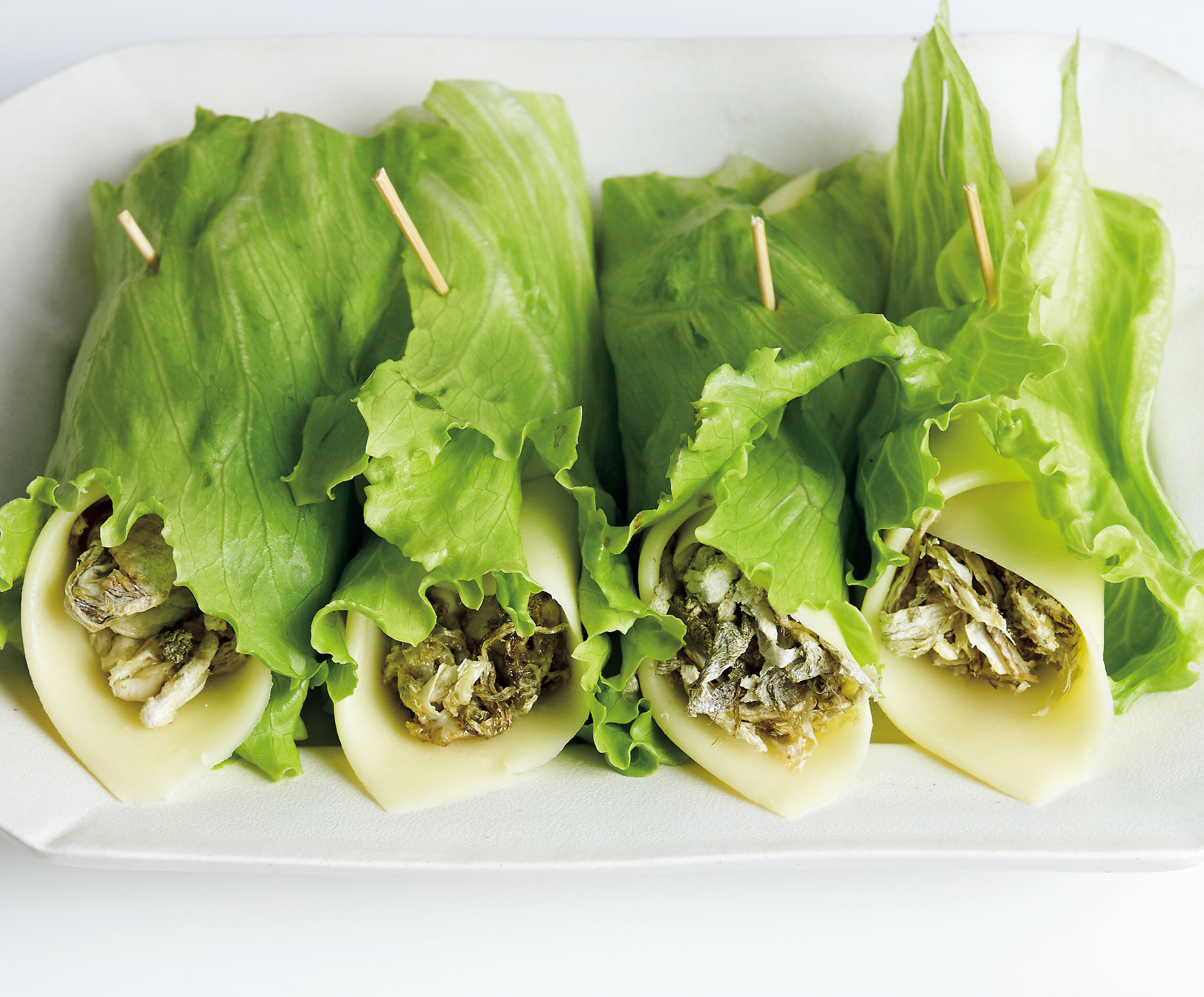 チーズのコクと昆布の旨味が好相性!レタスの食感も楽しい、巻くだけの簡単つまみです。すぐに飲みたい!早く飲みたい!せっかちなあなたにぴったりの、あっという間の早業つまみのレシピを料理研究家の大庭英子さんに習いました。