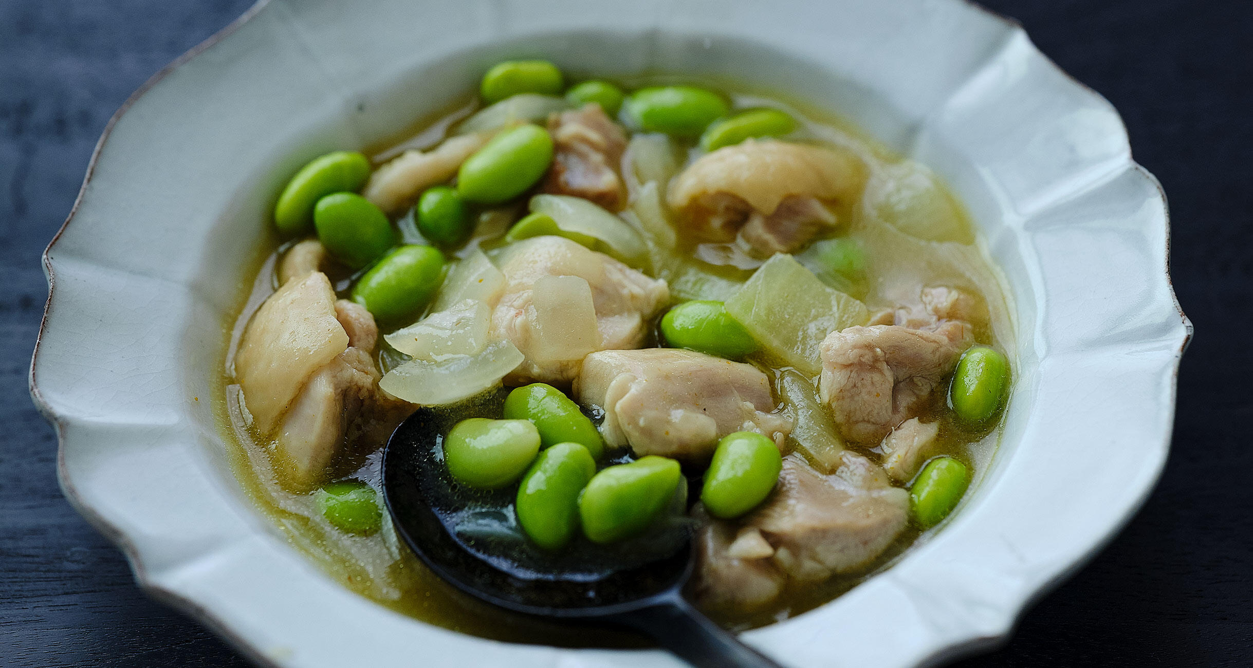 夏バテで食欲がわかないときに、ぜひこのスープをつくってみて下さい。カレーの風味が食欲を刺激し、枝豆が肝臓を労ります。良質なタンパク源である鶏肉も入った、栄養たっぷりの一品です。酒飲みには嬉しい!酒肴家・稲垣知子さんによれば、飲むタイミングも含めてスープは酒呑みにとって大事な存在。今回は稲垣さんの薬膳や栄養学の知識をもとに、弱った肝臓や胃をいたわる「お酒呑み」のためのスープづくりを習いました。