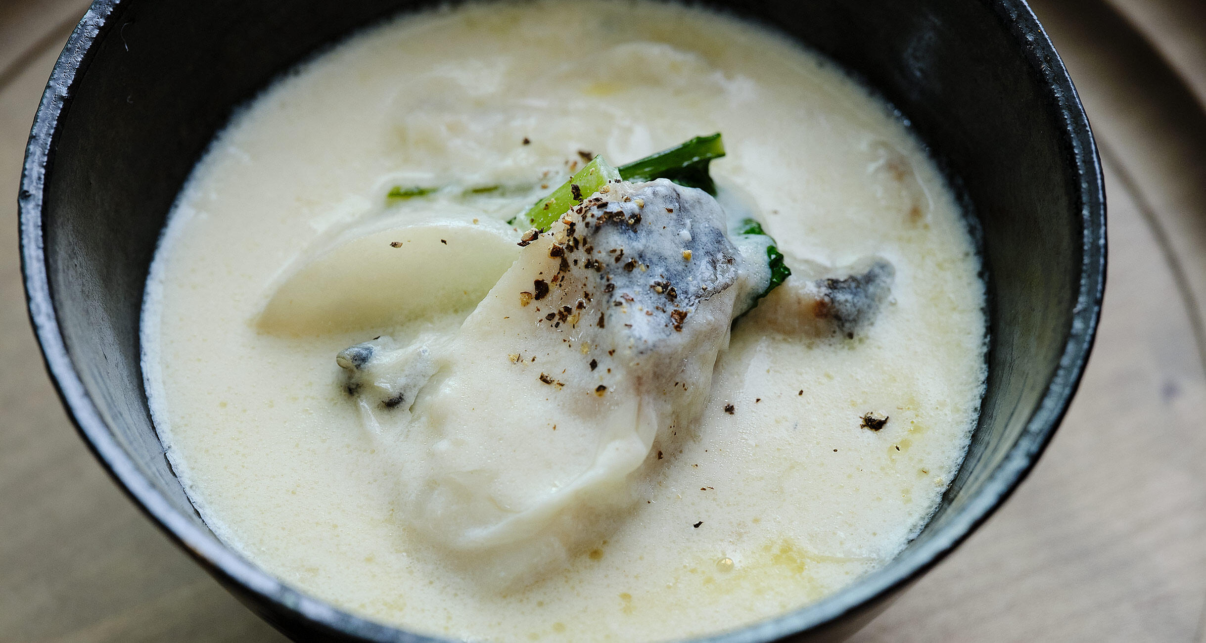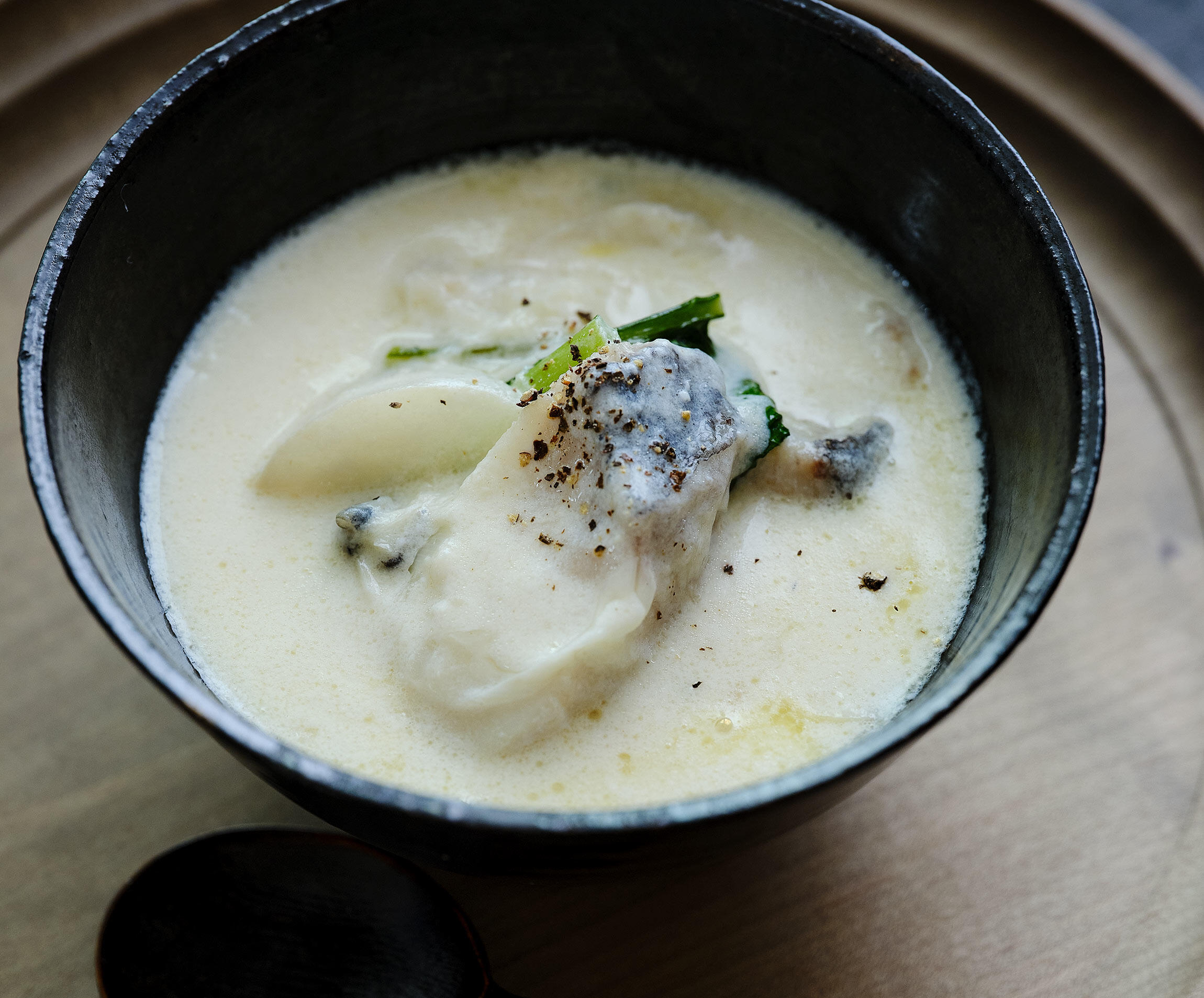 暑い日が続きますが、空調で冷えた身体を温めることも大切です。優しい甘味が魅力のかぶと、しっとりしたタラがミルクスープで一体に。味噌のコクも手伝って胃が休まるスープです。酒肴家・稲垣知子さんによれば、飲むタイミングも含めてスープは酒呑みにとって大事な存在。今回は稲垣さんの薬膳や栄養学の知識をもとに、弱った肝臓や胃をいたわる「お酒呑み」のためのスープづくりを習いました。
