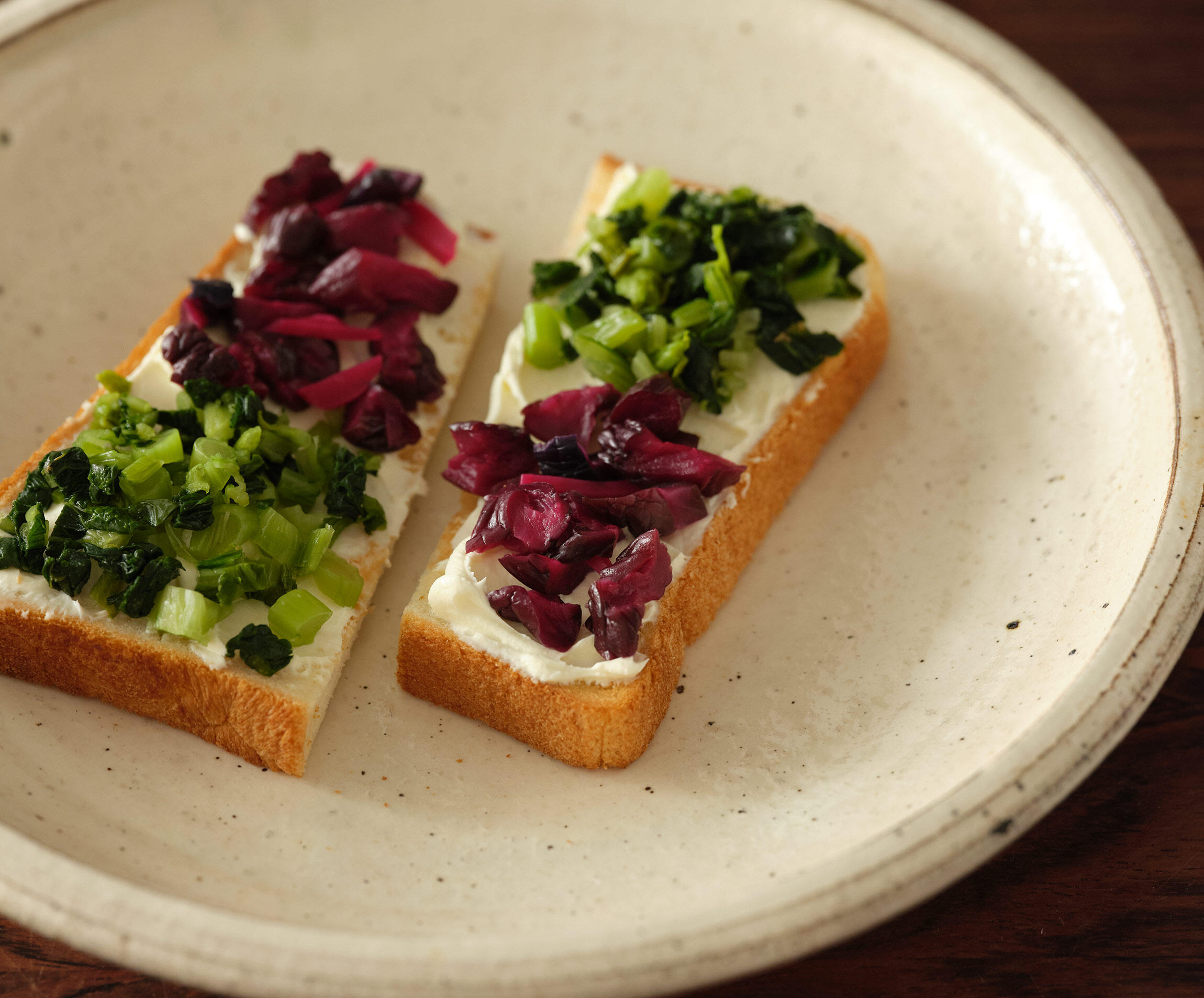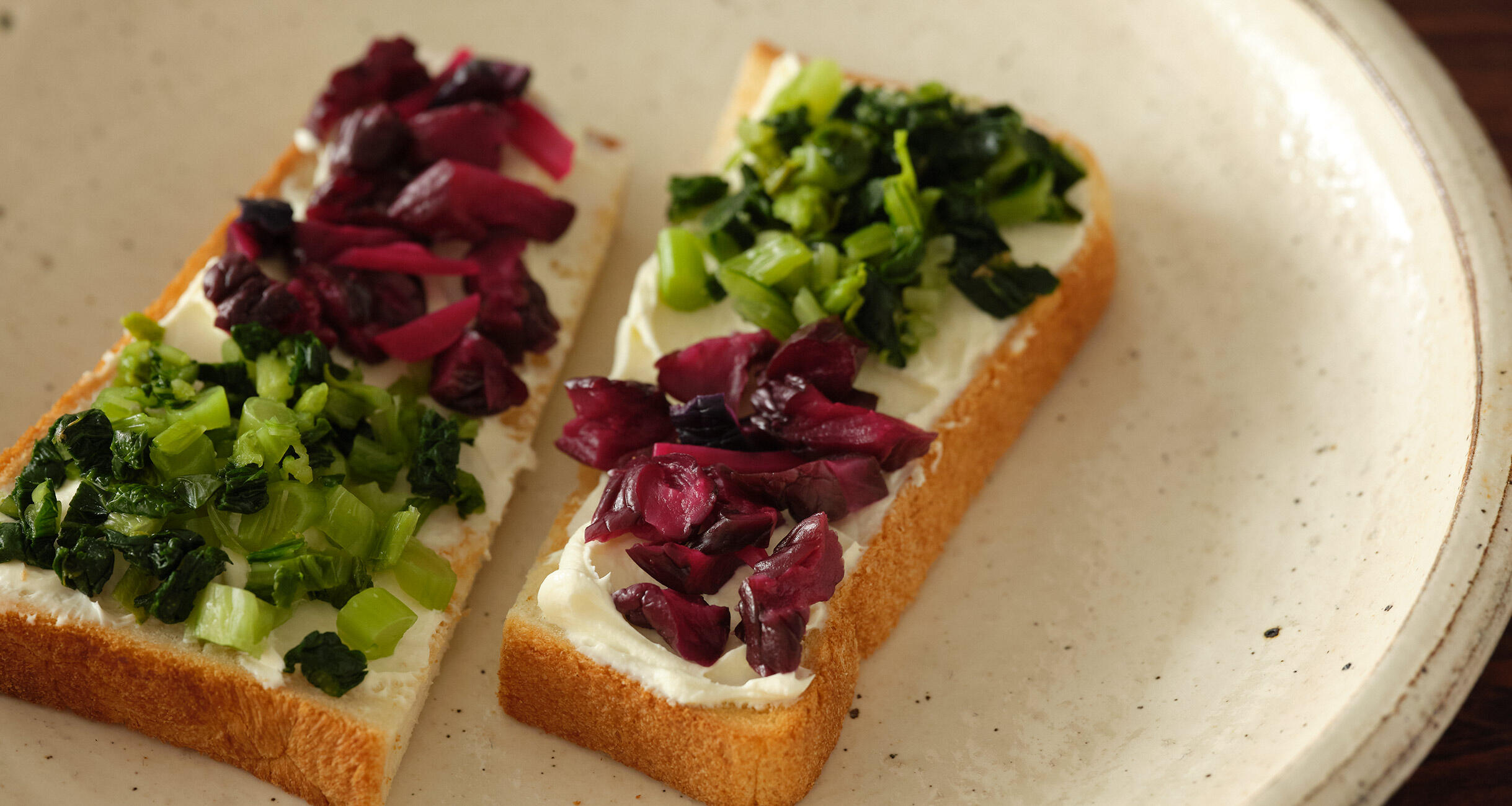 サワークリームに合わせるのはまさかの柴漬や野沢菜漬などの漬物!酸味と塩味のバランスがよく、間違いなくお酒が進むパンつまです。和の食材や調味料と炙ったパンを組み合わせてつくる“パンつま”。組み合わせの妙が光る、日本酒にぴったりのつまみを料理研究家の稲葉ゆきえさん(通称:スヌ子先生)に教わりました。自ら「酔いどれ料理家」を名乗るスヌ子先生のアイディアメニューをご覧あれ!