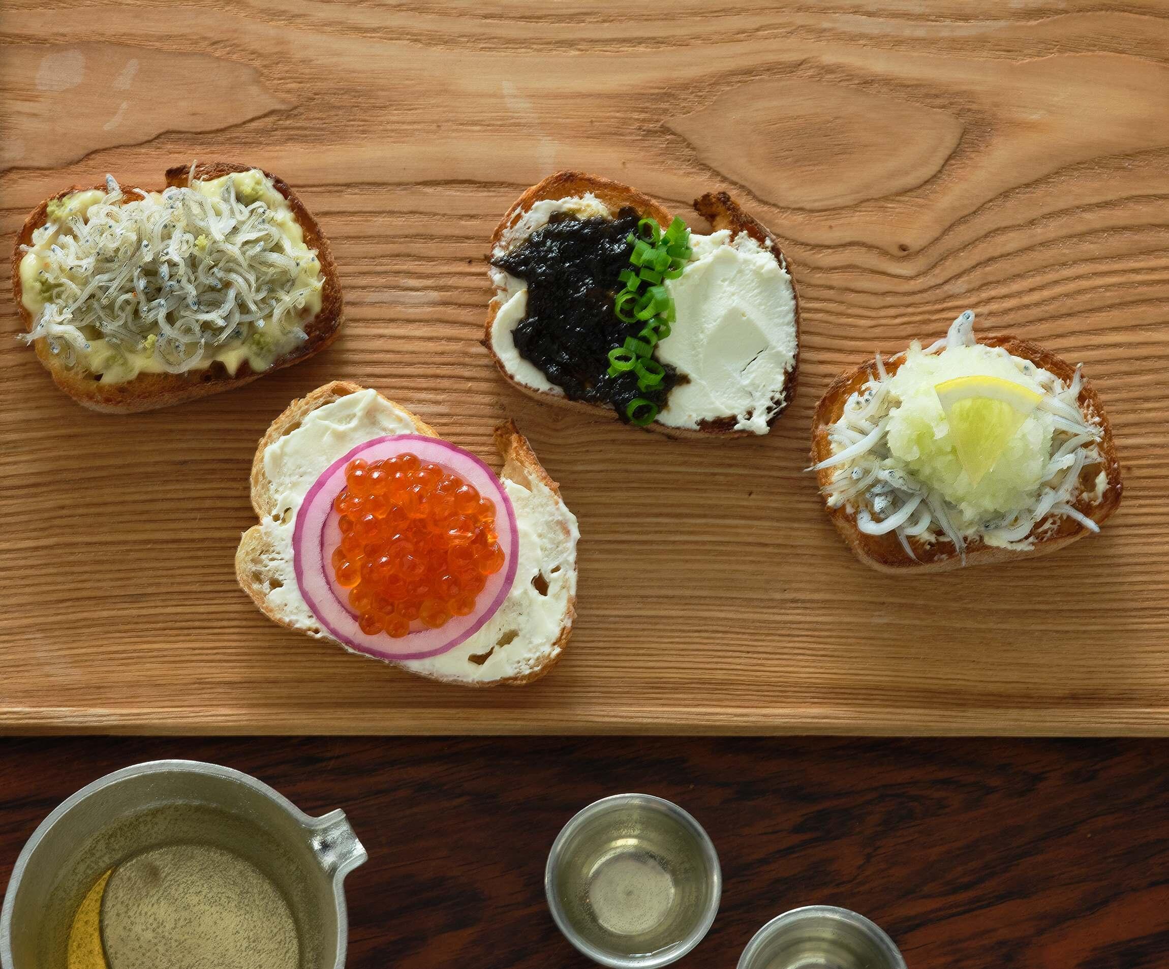 そのままでも美味しいつまみに、少しアレンジを加えた食欲を刺激する4品。コクの違いもそれぞれだから、お酒のチョイスも楽しめます。和の食材や調味料と炙ったパンを組み合わせてつくる“パンつま”。組み合わせの妙が光る、日本酒にぴったりのつまみを料理研究家の稲葉ゆきえさん(通称:スヌ子先生)に教わりました。自ら「酔いどれ料理家」を名乗るスヌ子先生のアイディアメニューをご覧あれ!