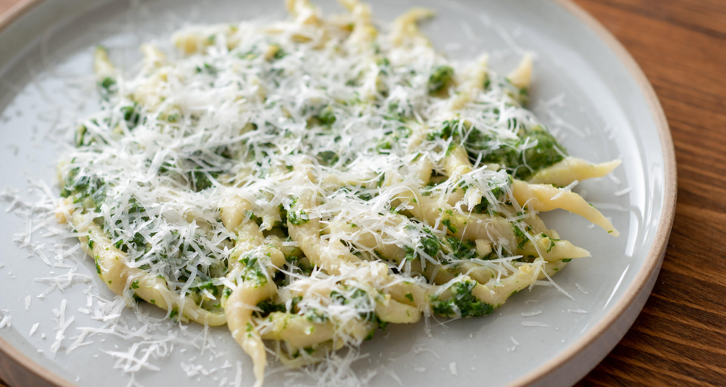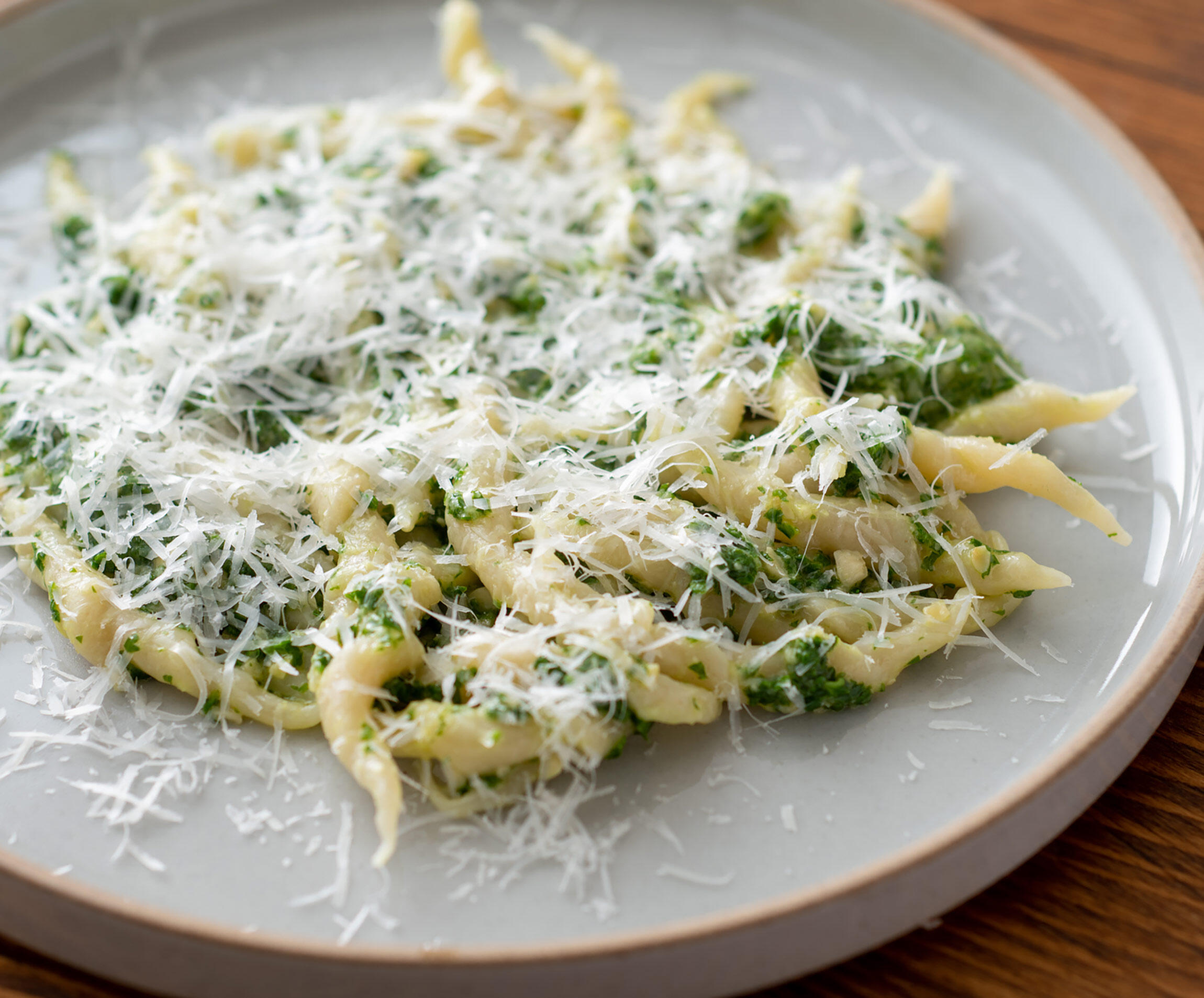 くるりとねじれているトロフィエという手打ちパスタに、パセリのソースがよく絡みます。パセリのクセと旨味が広がる、爽やかなパスタです。パスタが主食のデザイナー・ハヤシコウさんに、パパっとつくれるシンプルなパスタを習いました。この週末のランチにつくってみませんか?ハヤシさんのパスタは、優しい味わいなので、お好みで調味してみてください。