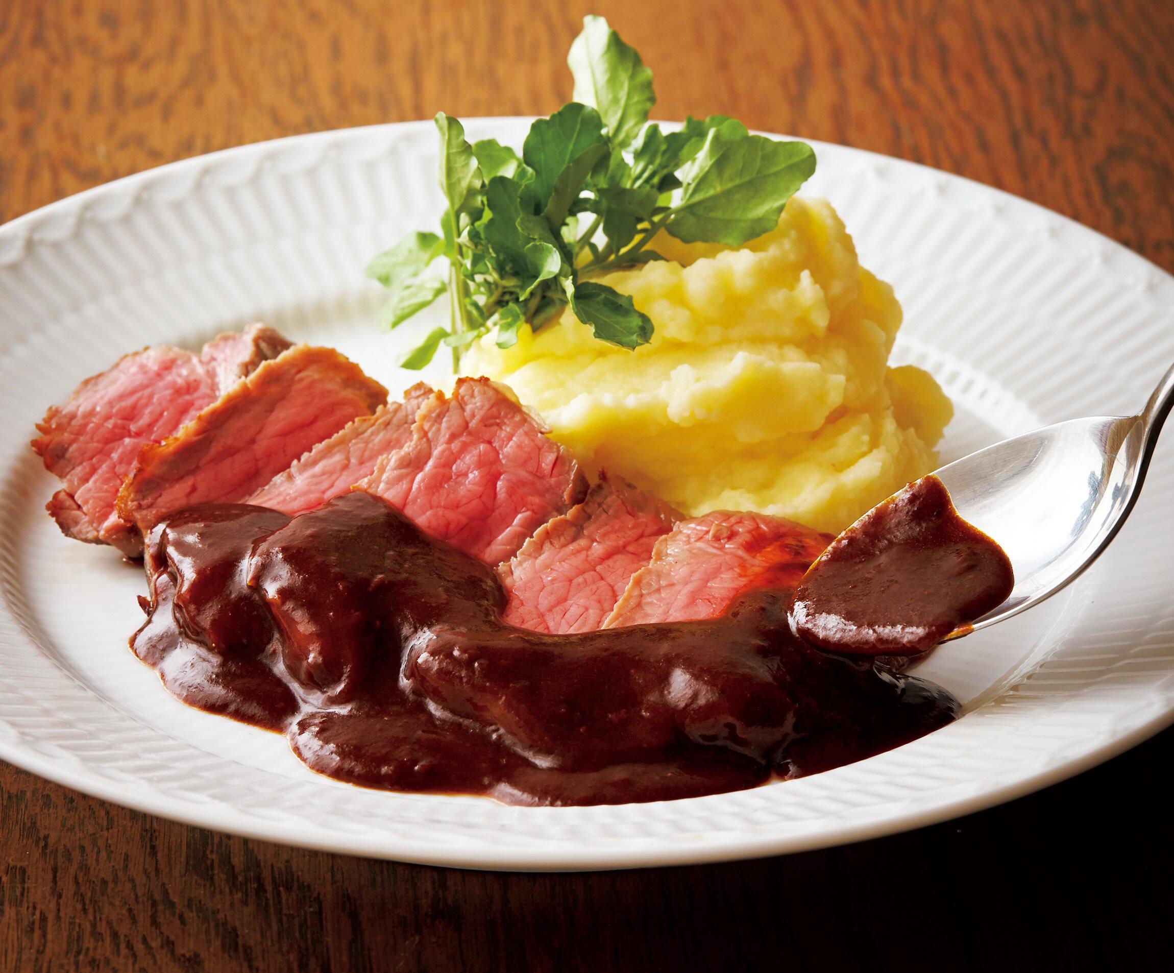 市販のデミグラスソースを味噌とオイスターソースでアレンジすると、味わいにより深みが生まれます。マッシュポテトをたっぷり添えた、王道のメインディッシュです!ワンパターンな味つけになりがちなステーキも、料理研究家の上田淳子さんの手にかかれば、あれよあれよという間にバリエーション豊かなつまみ変身。誰もが笑顔になる、お酒が進む豪快なステーキつまみを習いました。