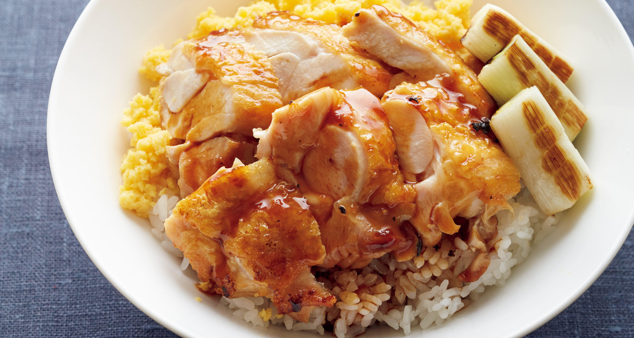 雉の美味しさになぞらえて、鶏肉や魚でつくったことからこの名があるとか。旨味の多い鶏もも肉を香ばしく焼いて甘辛い味をからめます。炒り卵を添えて彩りよく。