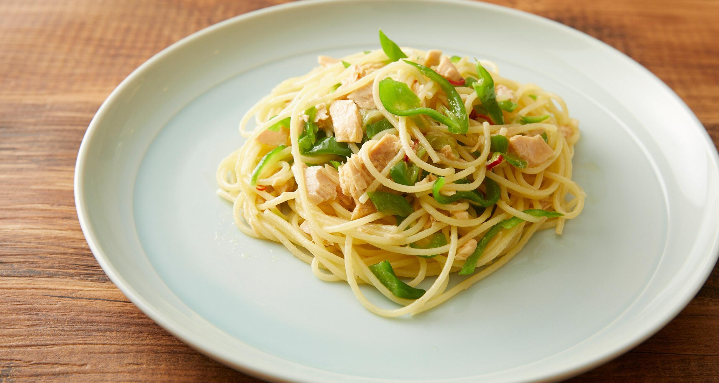 甘長唐辛子を丸ごと使います。実は、種もワタも美味しく食べられるんです!パスタが主食のデザイナー・ハヤシコウさんに、パパっとつくれるシンプルなパスタを習いました。この週末のランチにつくってみませんか?ハヤシさんのパスタは、優しい味わいなので、お好みで調味してみてください。