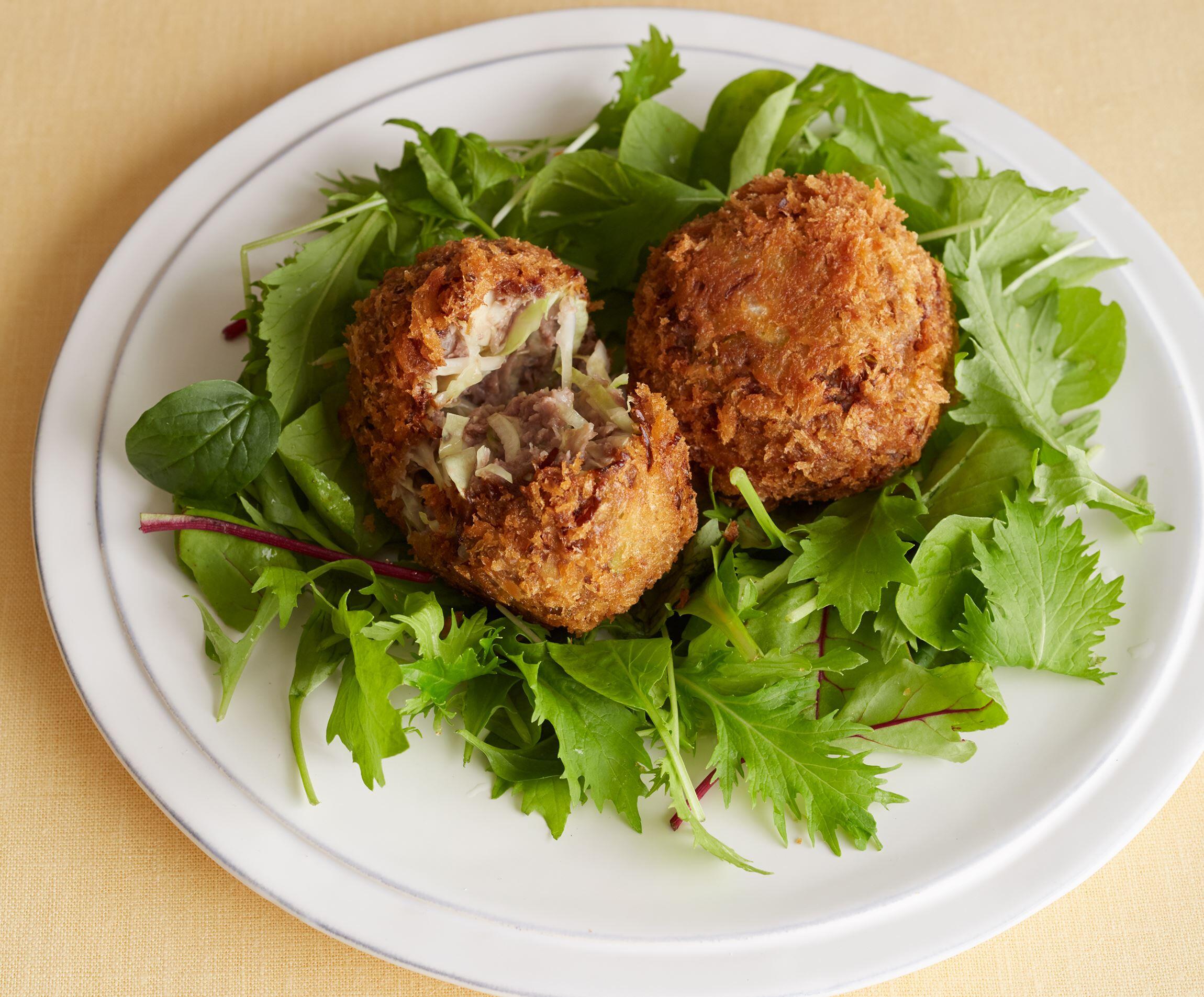 キャベツをたっぷり練り込んだ、ザクザクとした食感が美味しい一品。キャベツパワーで、ヘルシーなのに食べごたえのあるメンチカツに仕上がります。料理名を聞いたら、味を浮かべることができる、そんな、誰もが知っているおなじみのおかずを、料理研究家の大庭英子さんに教えてもらいました。