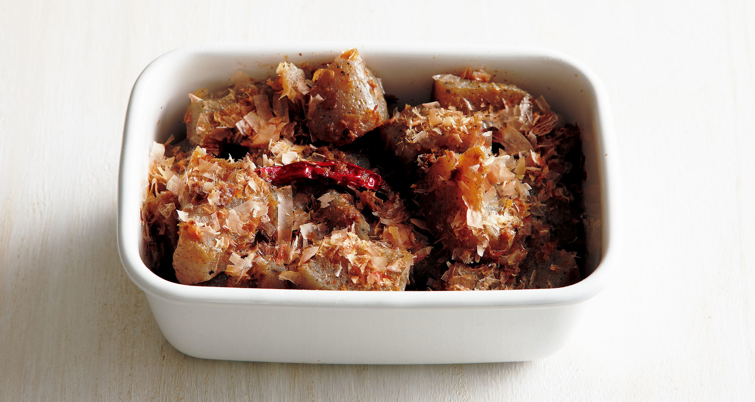 残りの削り節を加えてまぶし、保存容器に入れて冷蔵庫で保存する。