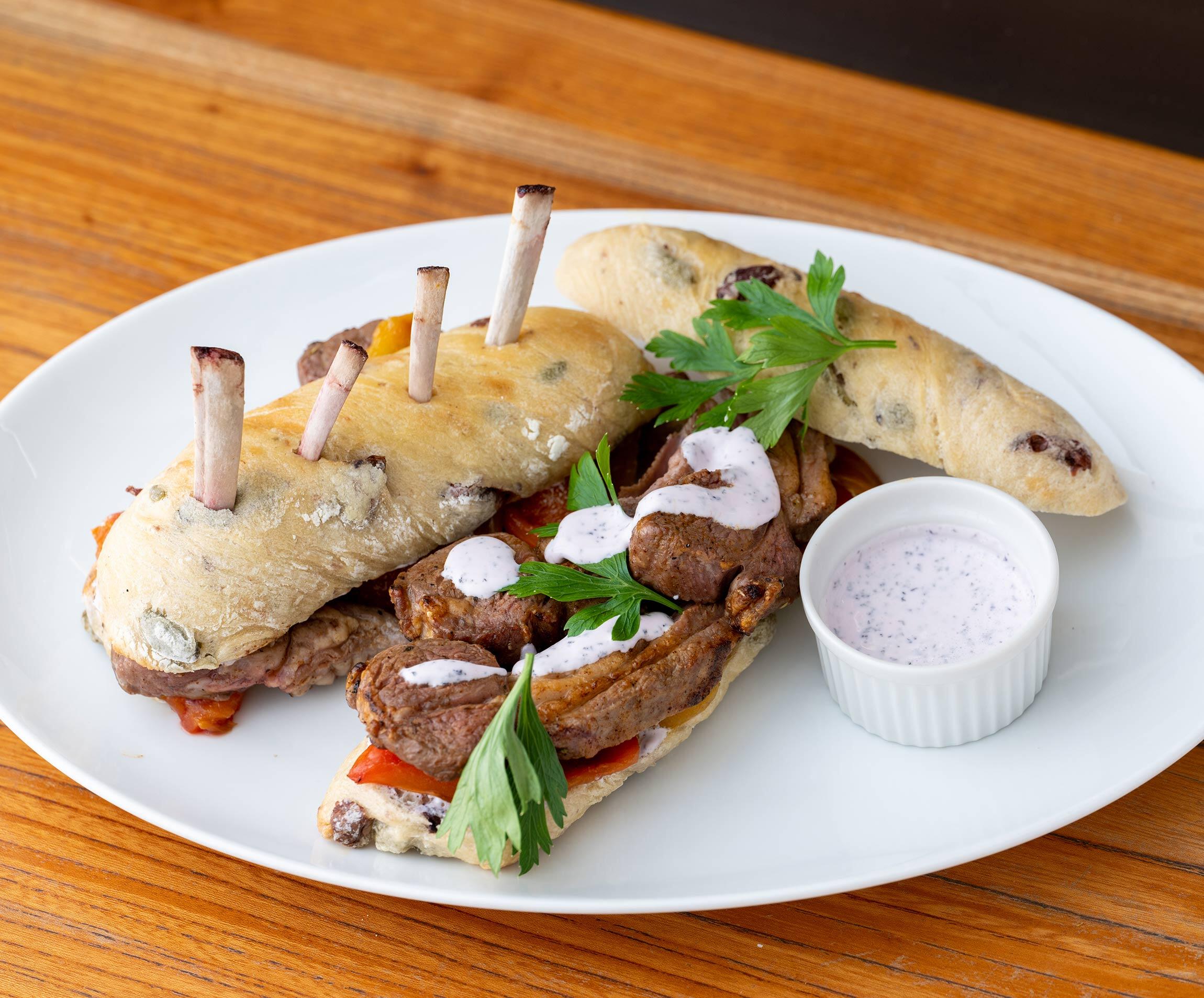 サンドイッチというより、もはやメインを張るにふさわしいボリュームと存在感。ラムの野生的な風味にケイジャンスパイスの香り、パプリカマリネの甘酸っぱさ、特製ヨーグルトソースの酸味が絡み合い、ヨーロッパのムスリム街を思わせる異国感がむんむん。骨をスティックに見立てた盛り付けも楽しい。