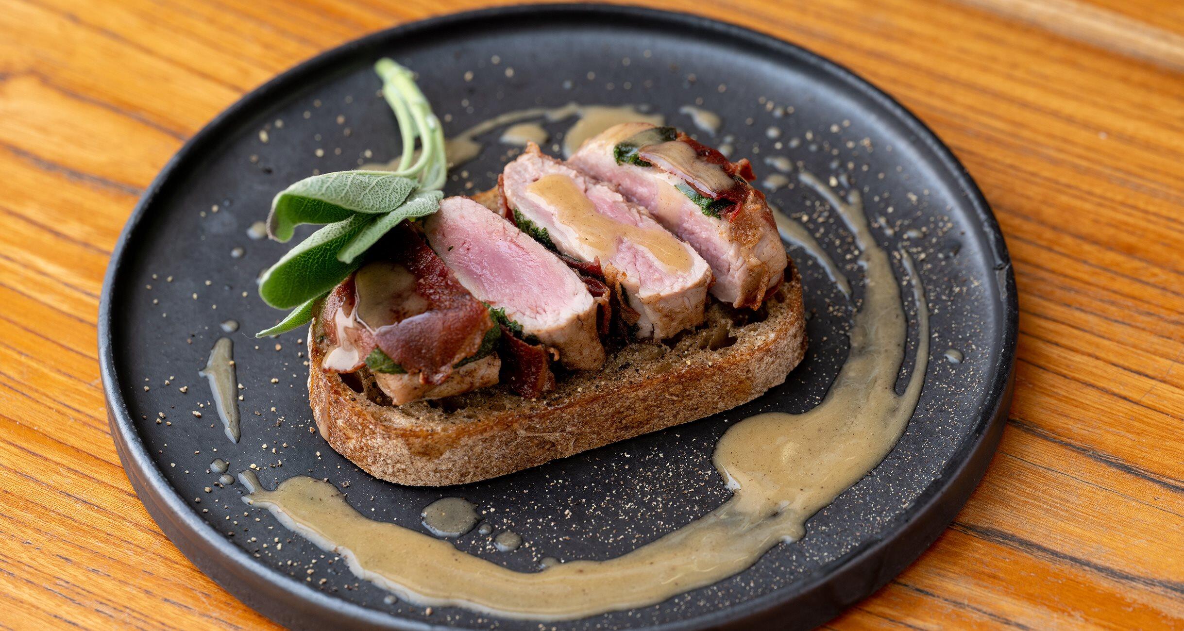 ローマの郷土料理“サルティンボッカ”をオープンサンドにアレンジ。バターソースを添えて、おしゃれなブルスケッタ仕立てに。重ねるだけでは終わらない、ガストロノミックな“肉サンド”秘蔵レシピ第3弾。東京・神楽坂にある大人気のビストロ「BOLT(ボルト)」のオーナーシェフの仲田高広さんが指南します。