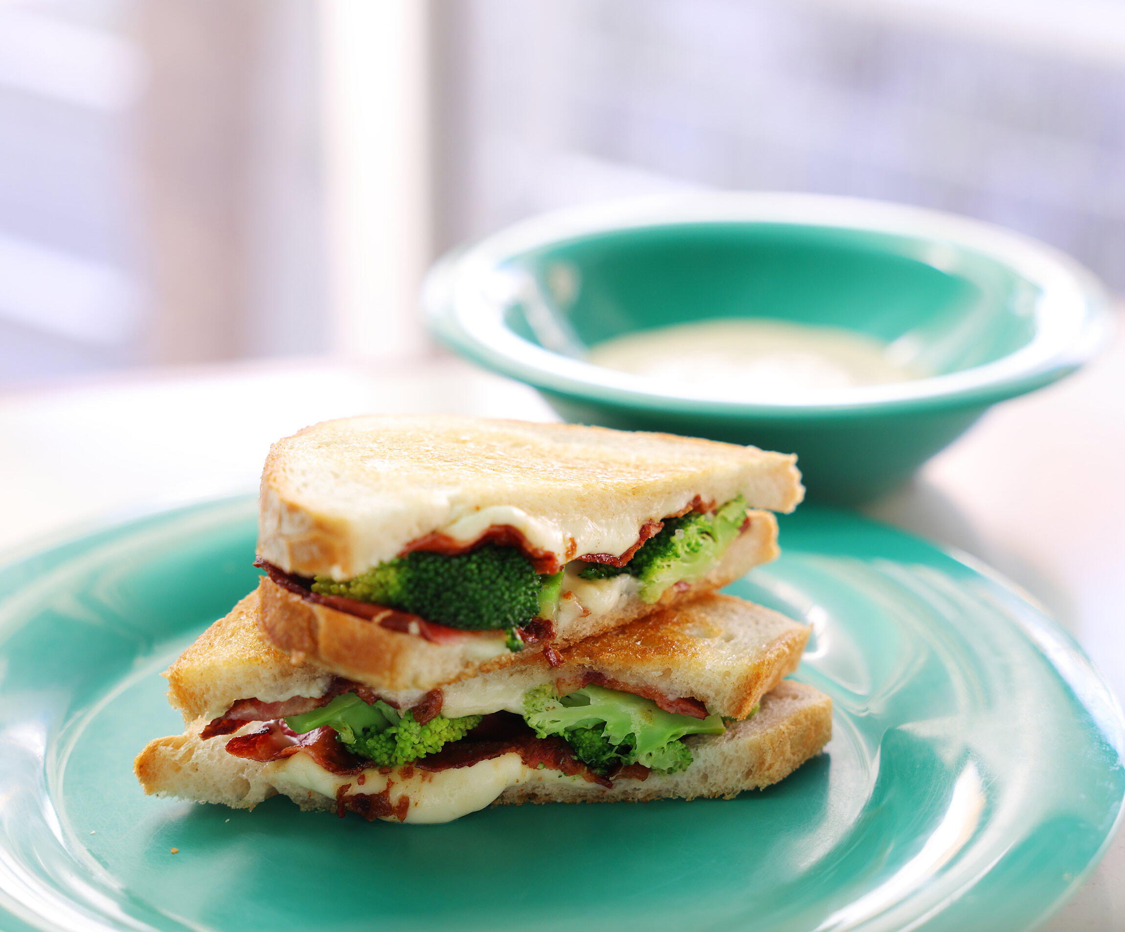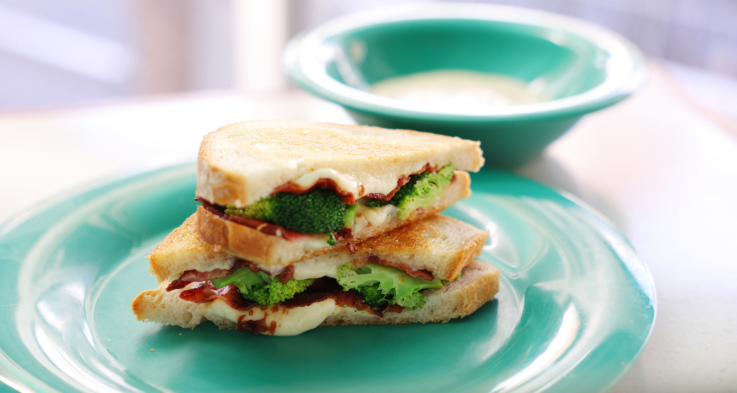メキシコが起源のシーザーサラダからヒントを得た、グリルドチーズサンド。ゆでたブロッコリーとカリカリに焼いたベーコンをパンにはさんで焼き、アンチョビとチーズをきかせたシーザーソースにドボンとつけて豪快に食らいたい。濃厚な味と食感で、ボリューム感と満足度は折り紙付きだ。