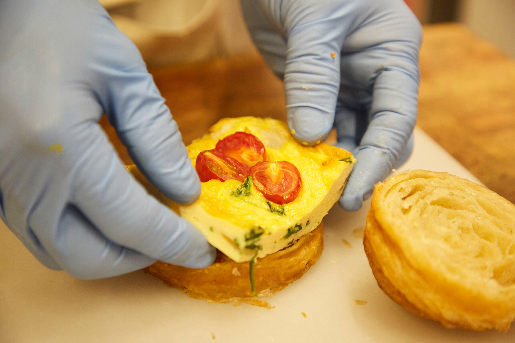 チーズの味がしっかりきいて、野菜もたっぷり入ったオムレツを、クロワッサン生地のかわいいパンでサンド。東京・六本木にある人気パン屋「ブリコラージュ ブレッド&カンパニー」の人気サンドのレシピを大公開。休日に、ワインを添えて食べたくなる、目にも美味しいレシピをご紹介します。