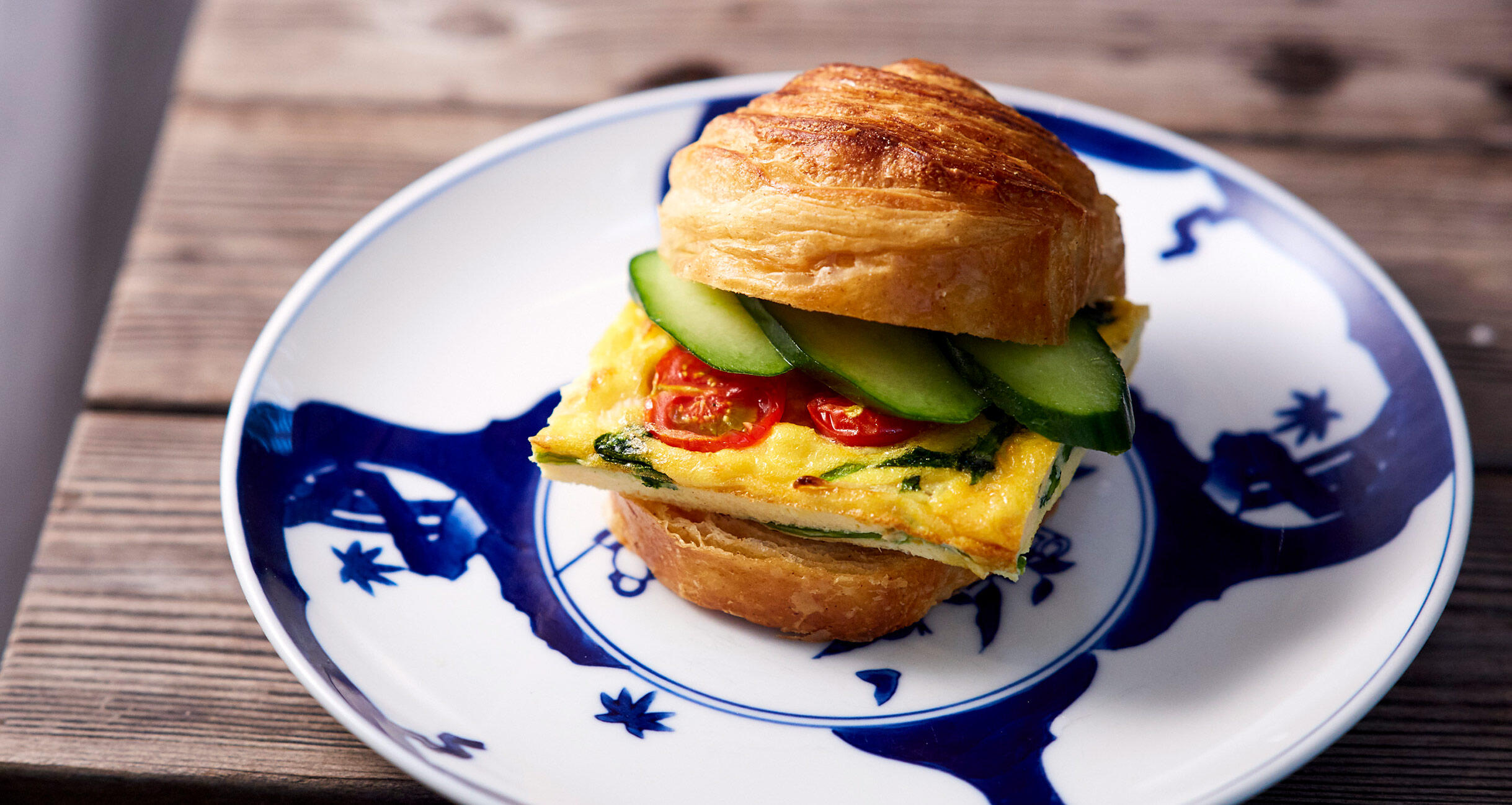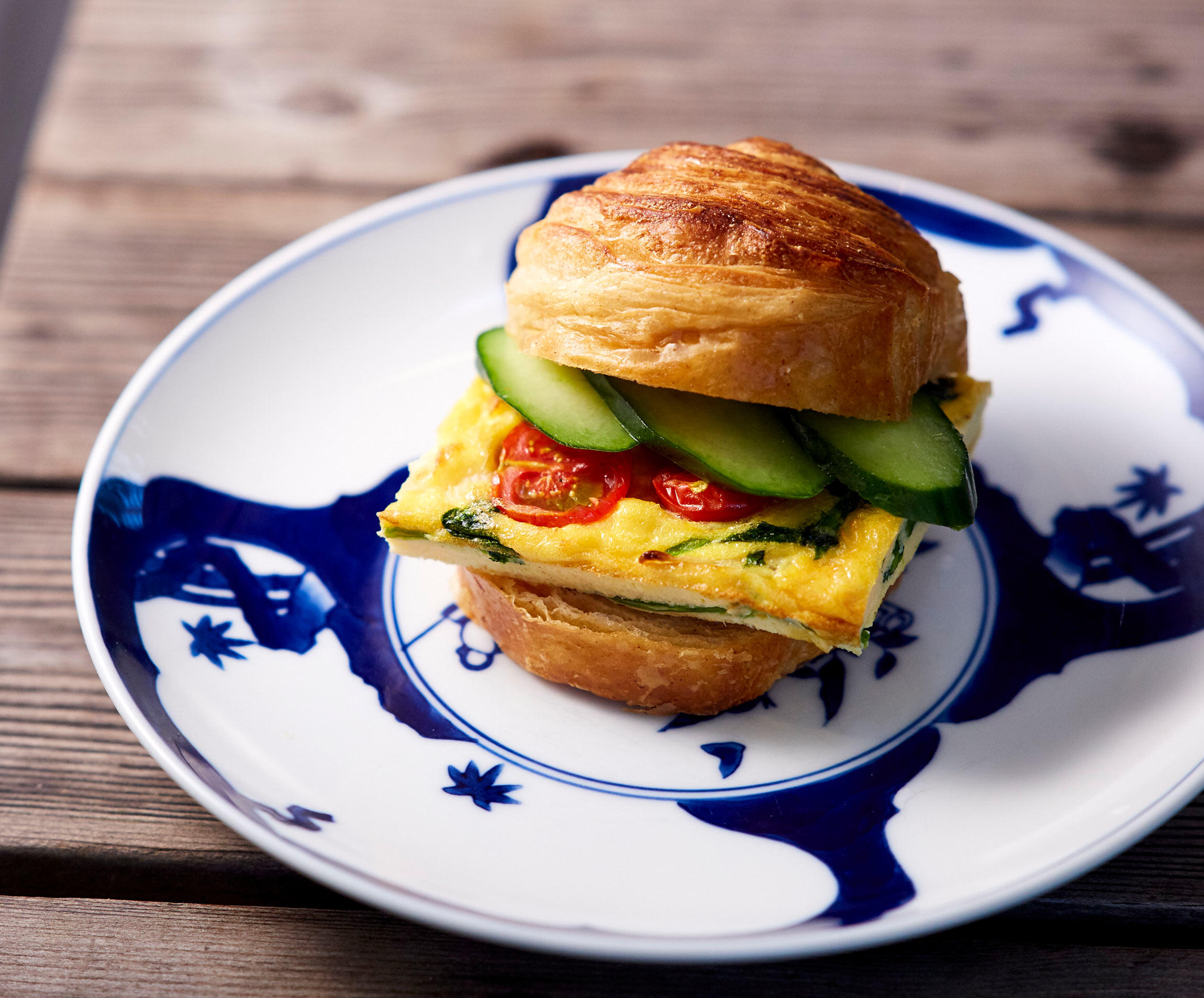 バターたっぷりのクロワッサンに、チーズや生クリームの入ったオムレツという組み合わせはぜひ朝食やブランチに。キッシュの軽やか版といった味わいだ。甘酸っぱいトマトが新鮮で、もう一口と食が進む。