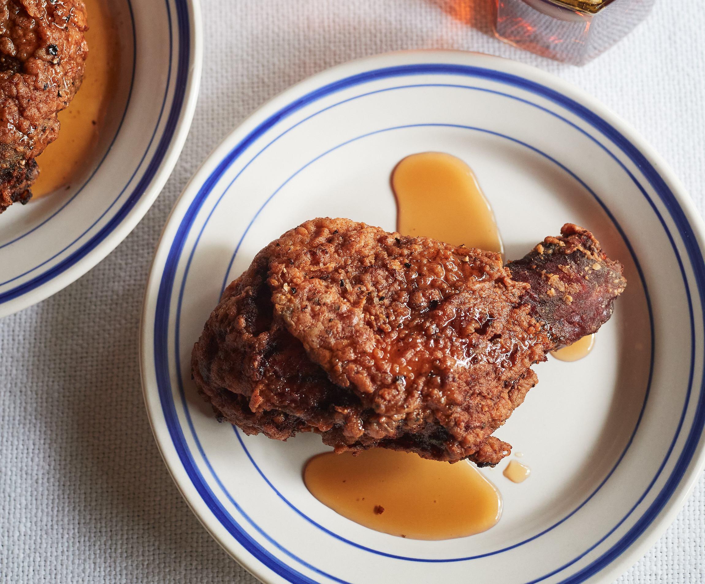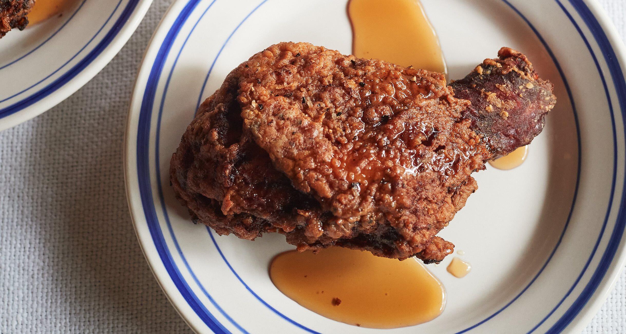 アメリカ・ポートランドのレストランで食べたカルダモンメイプルシロップと胡椒がきいたフライドチキンの取り合わせ。フライドチキンは、衣を二度づけしてカリカリを超えてガリガリに揚げるのが最大のポイントです。