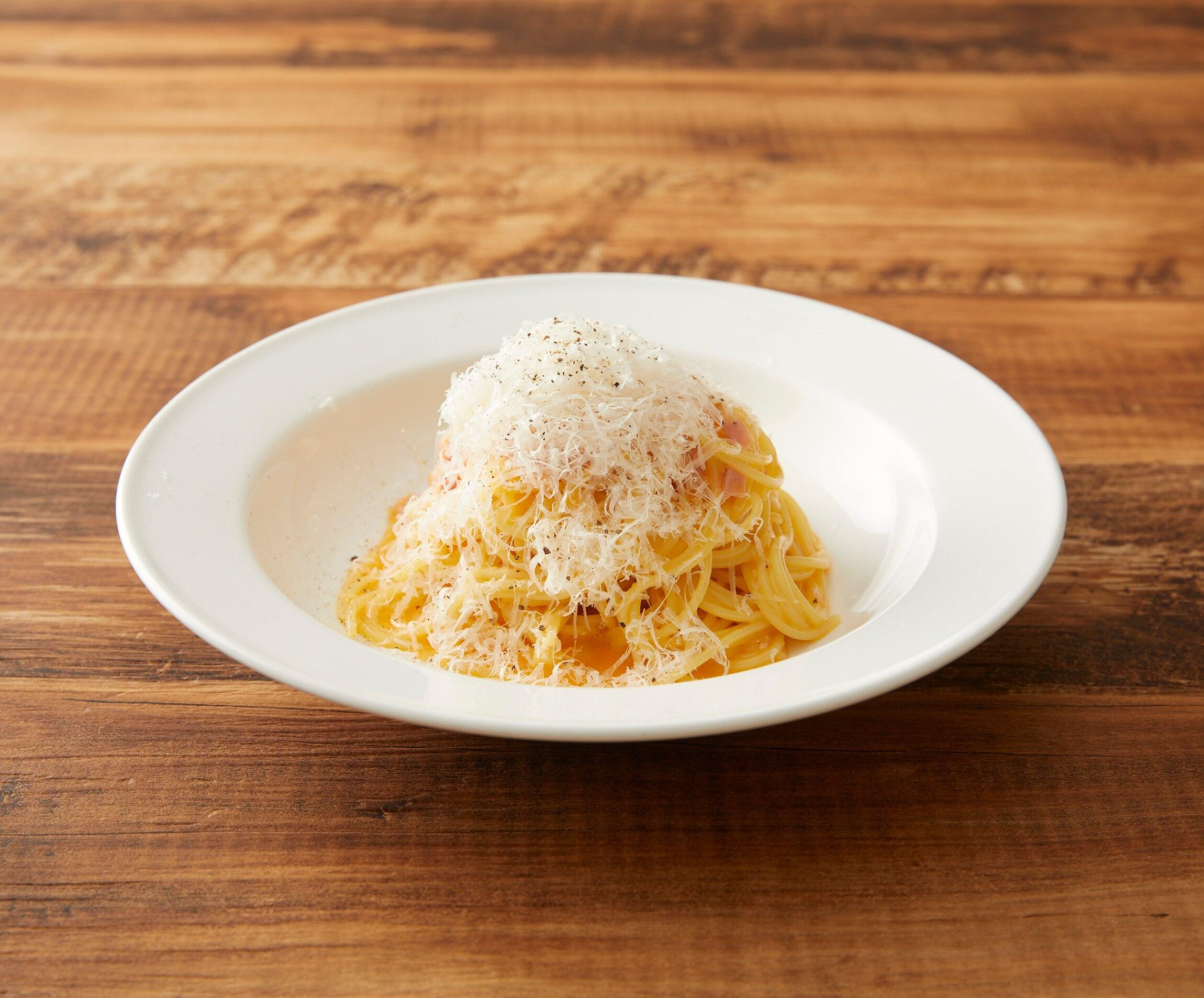 日本でとても人気のある「カルボナーラ」は、レシピの生い立ちが色々あるのですが、一般的に伝統的なソースは「ペコリーノ・ロマーノ」「グアンチャーレ」「卵」「黒胡椒」と4つの食材をつかいます(豚頬肉を塩漬け加工したグアンチャーレは入手が難しいので今回のレシピではベーコンに)。