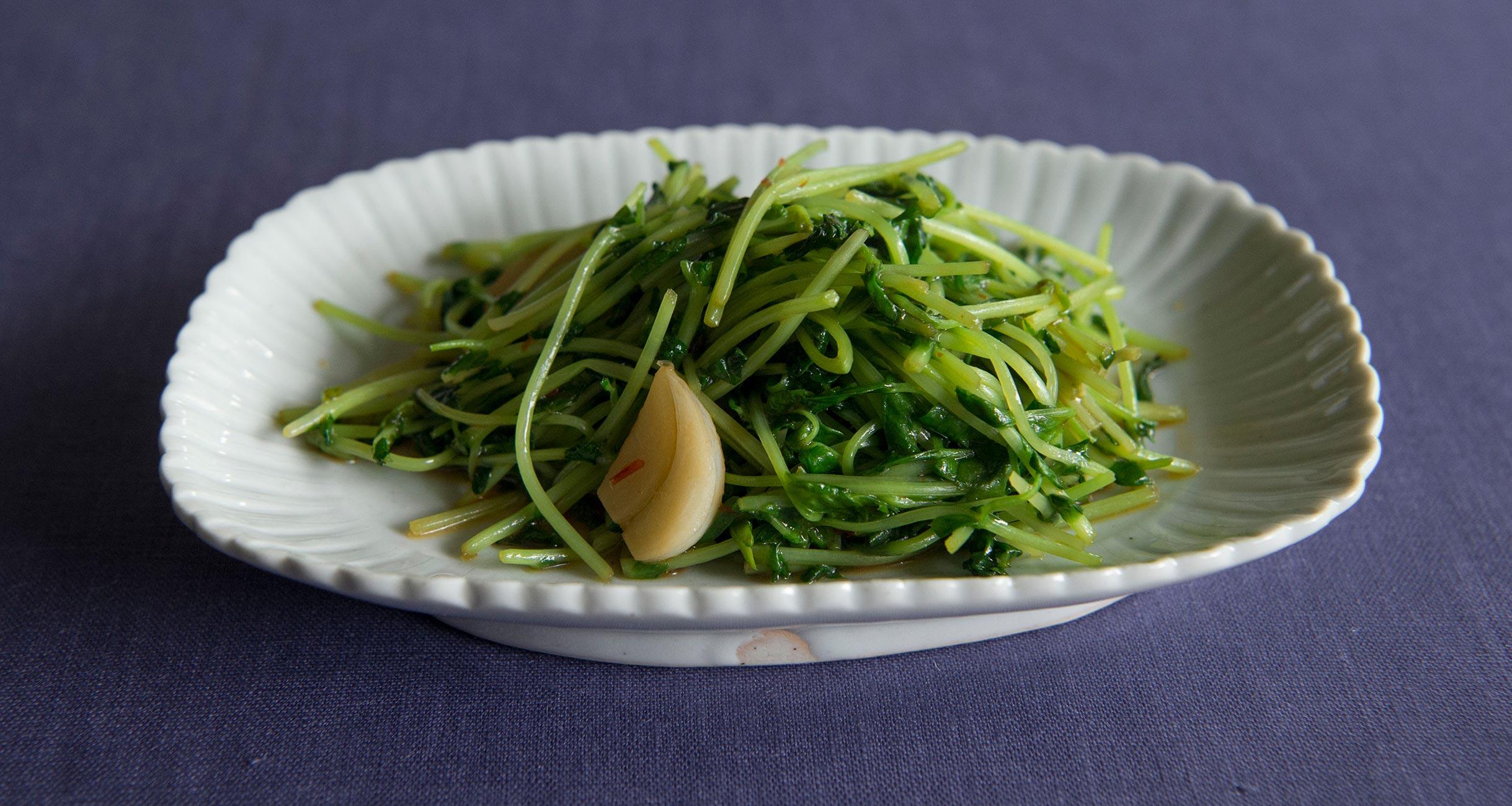 にんにく、オイスターソース、そして豆板醤!食欲を刺激する旨味要素が豆苗のしんなり&ザクザク食感にからんで、やみつき必至です。手軽でライトなボリュームながら、存在感際立つ副菜のレシピを料理研究家の大庭英子さんに教わりました。