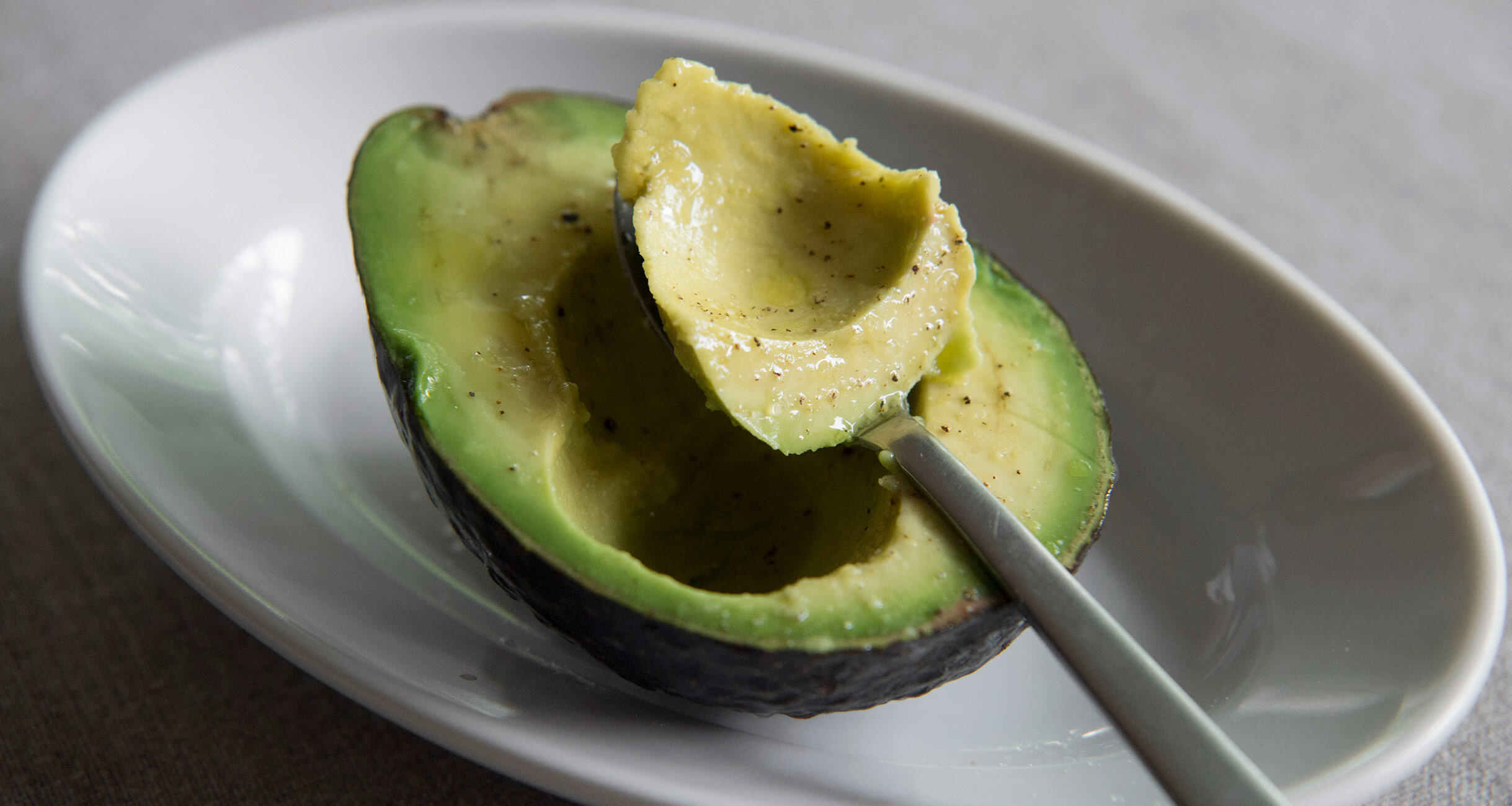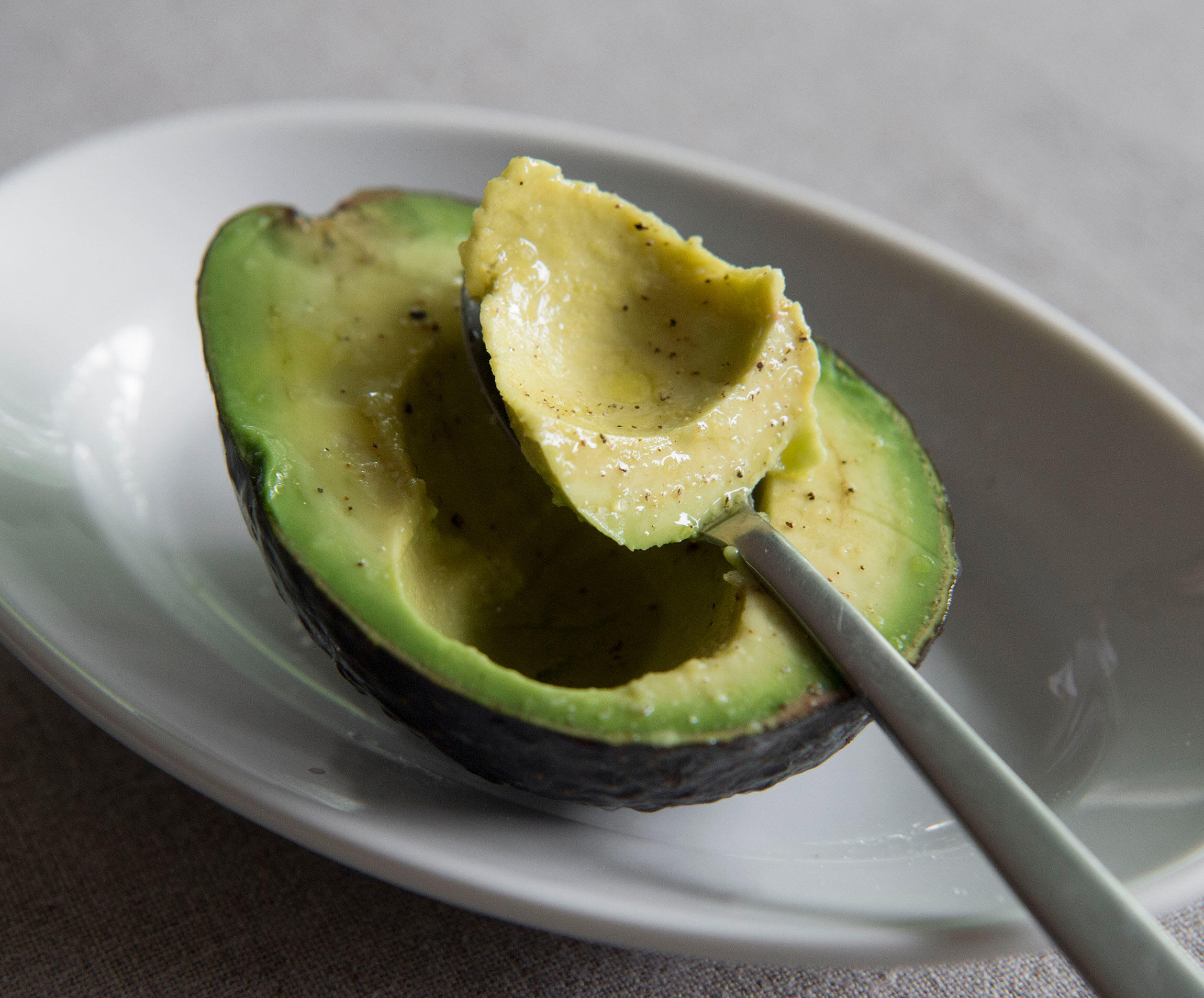 アボカドを器に盛ってレモン汁、オリーブオイルをかけ、塩、胡椒をふる。