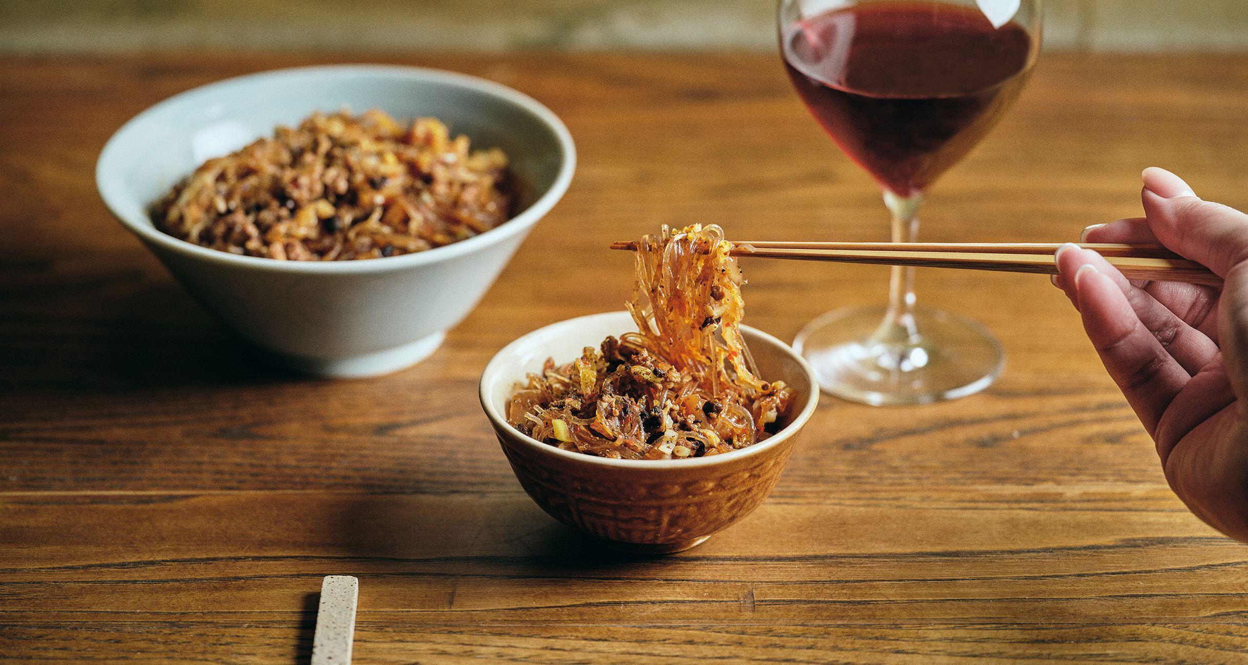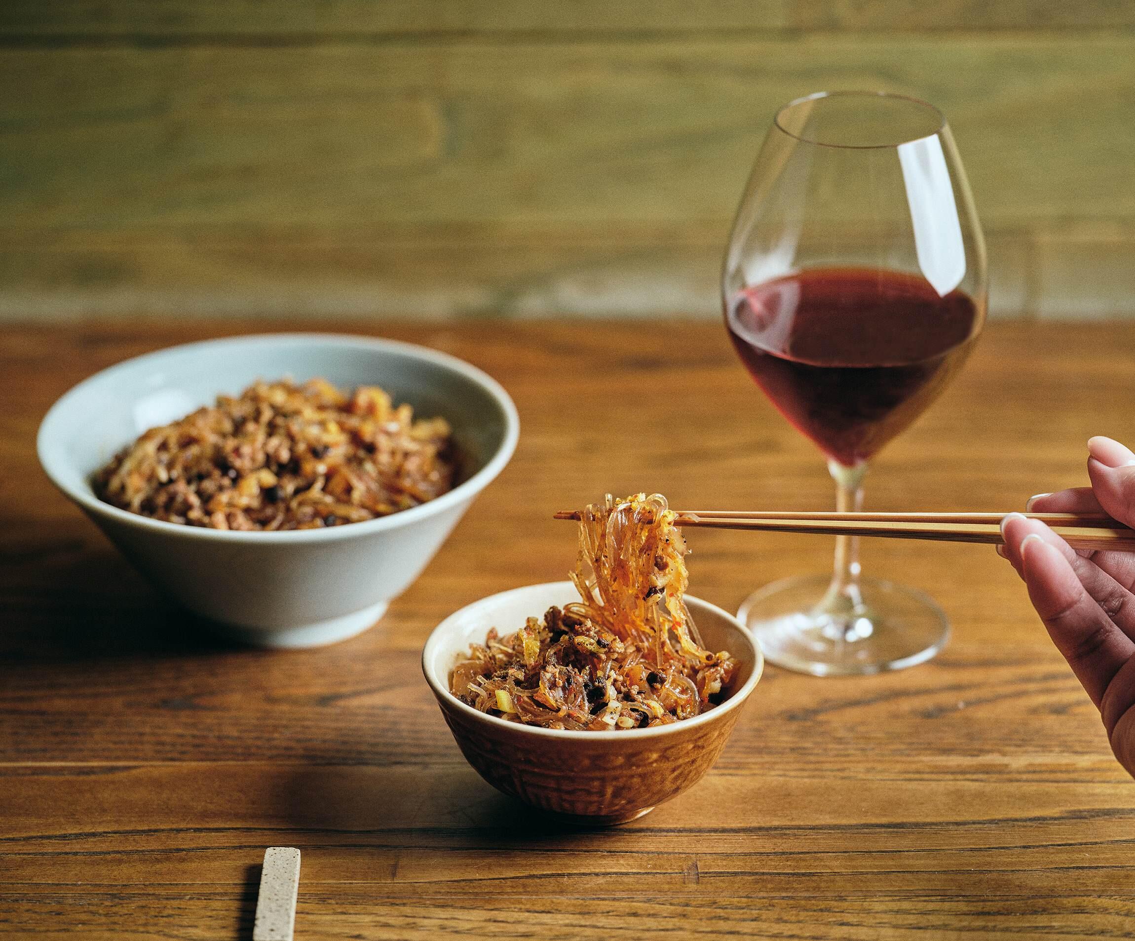 中国東北部の白菜漬け“酸菜”は、乳酸発酵由来の酸っぱ旨さがやみつき必至。スープや煮込みの調味料代わりにも重宝の中国食材を、今回は日本の白菜の古漬けに代えてアレンジ。痺れ系の麻婆春雨とは一味違う、まろやかなコクがつまみ向き。スパイス料理でお酒を飲む楽しさは、一度体験したらやみつき必至。“スパイスと燗”を主軸に、ジャンルフリーの酒肴で魅了する西荻窪「Spice飯店」店主・岡本大佑さんに、家庭でも簡単につくれる絶品おつまみを習いました。