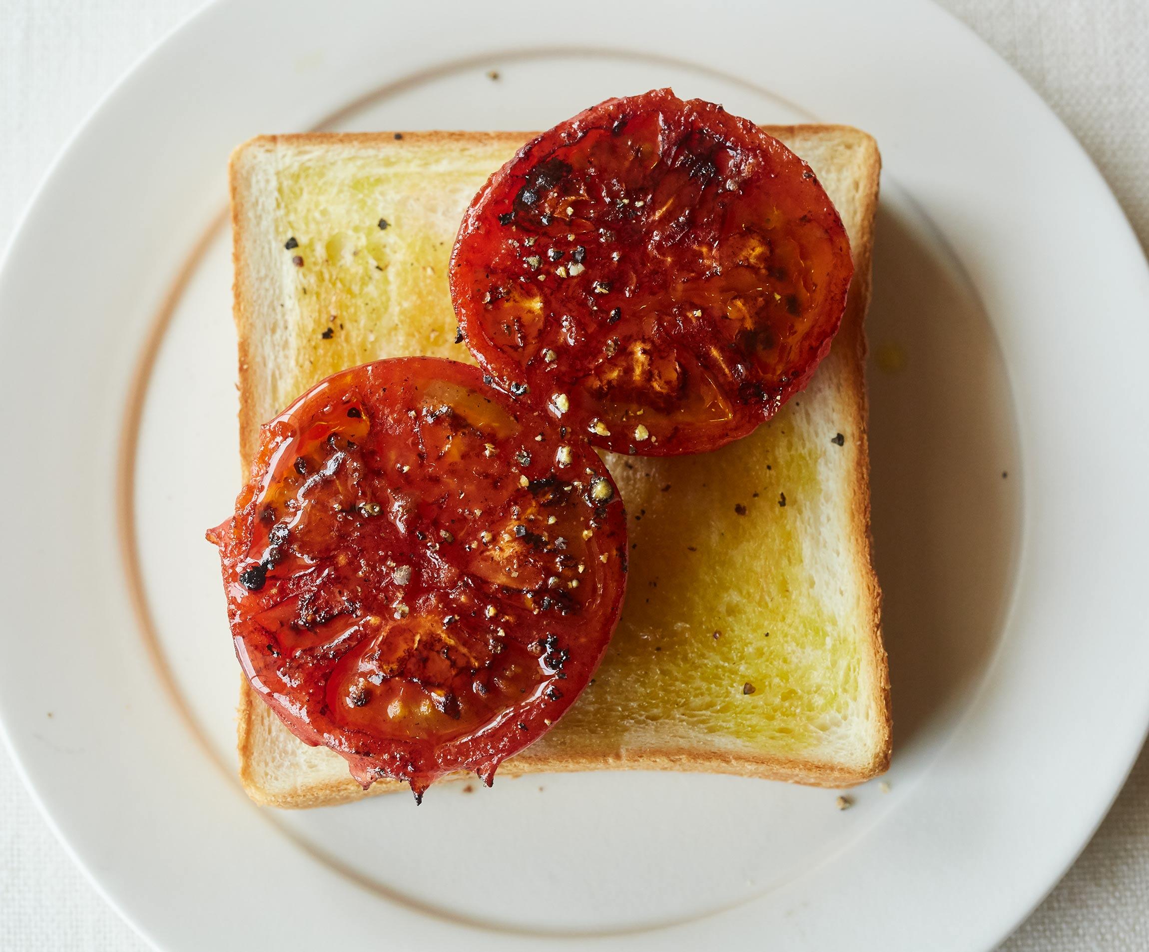トマトは火を通すと、甘くジューシーに!トマトの焼き汁がパンに染みて、ワシワシ食べられます。パンを焼いて上にのっければ立派なごちそうの出来上がり。「なるほど、この手があったか!」感じるレシピを料理家の飛田和緒さんに教えてもらいました。
