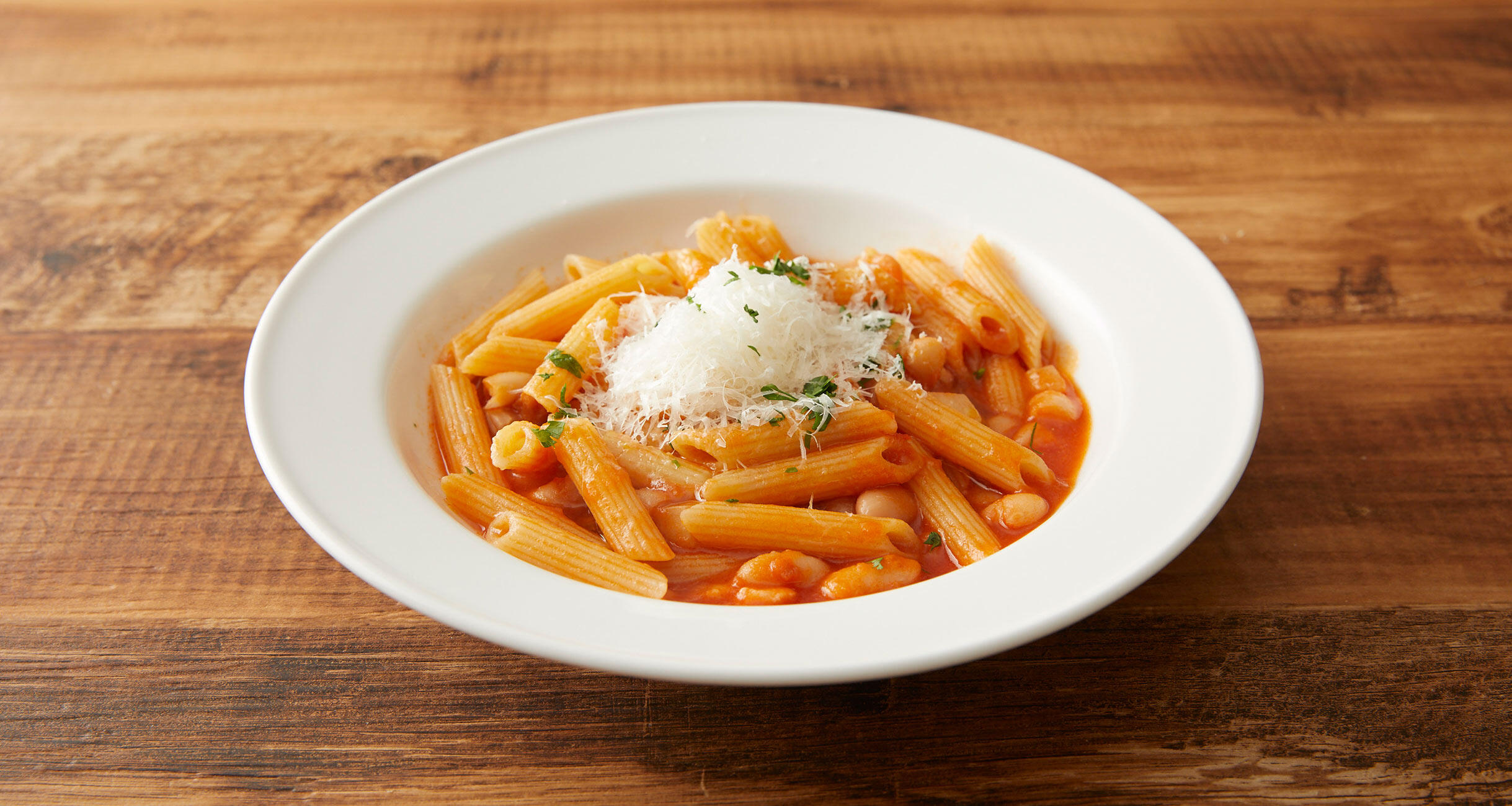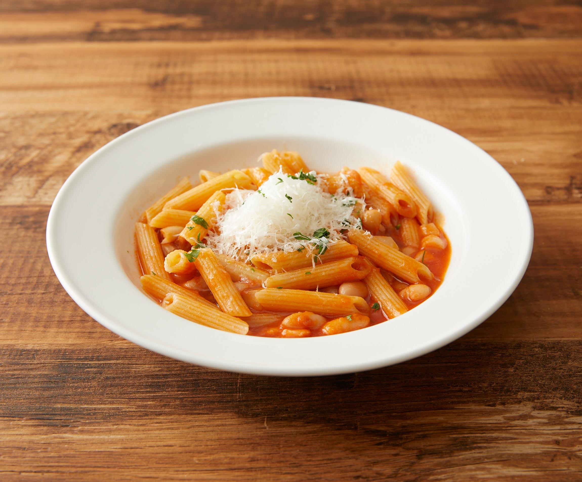 イタリアの家庭ではよく食べるパスタです。使う豆やパスタの種類、トマトの有無で、いろんなバリエーションが。いろんなバリエーションがあるということは、つくりやすいとも言えるし、好まれているってことよね。