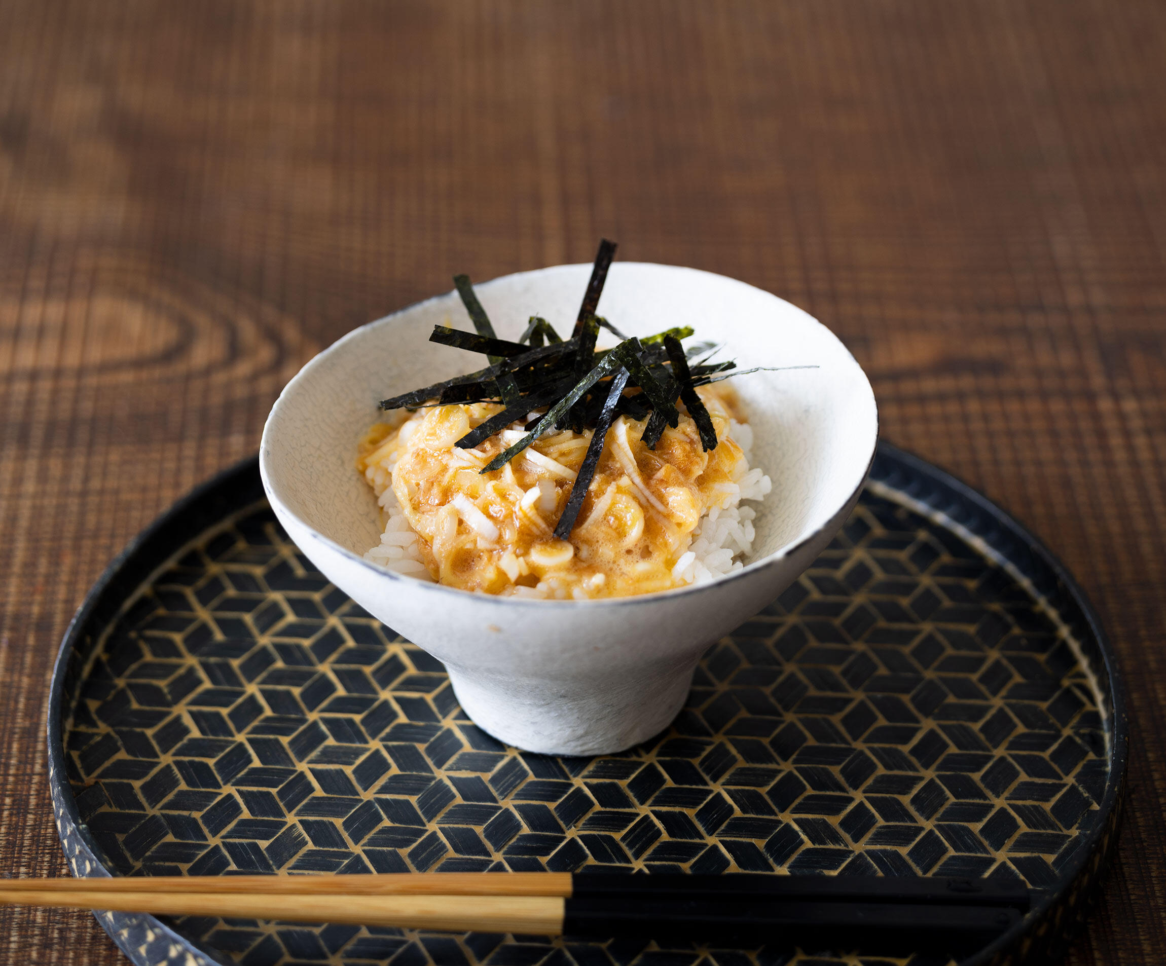 ご飯をよそい、1をのせて海苔を散らす。