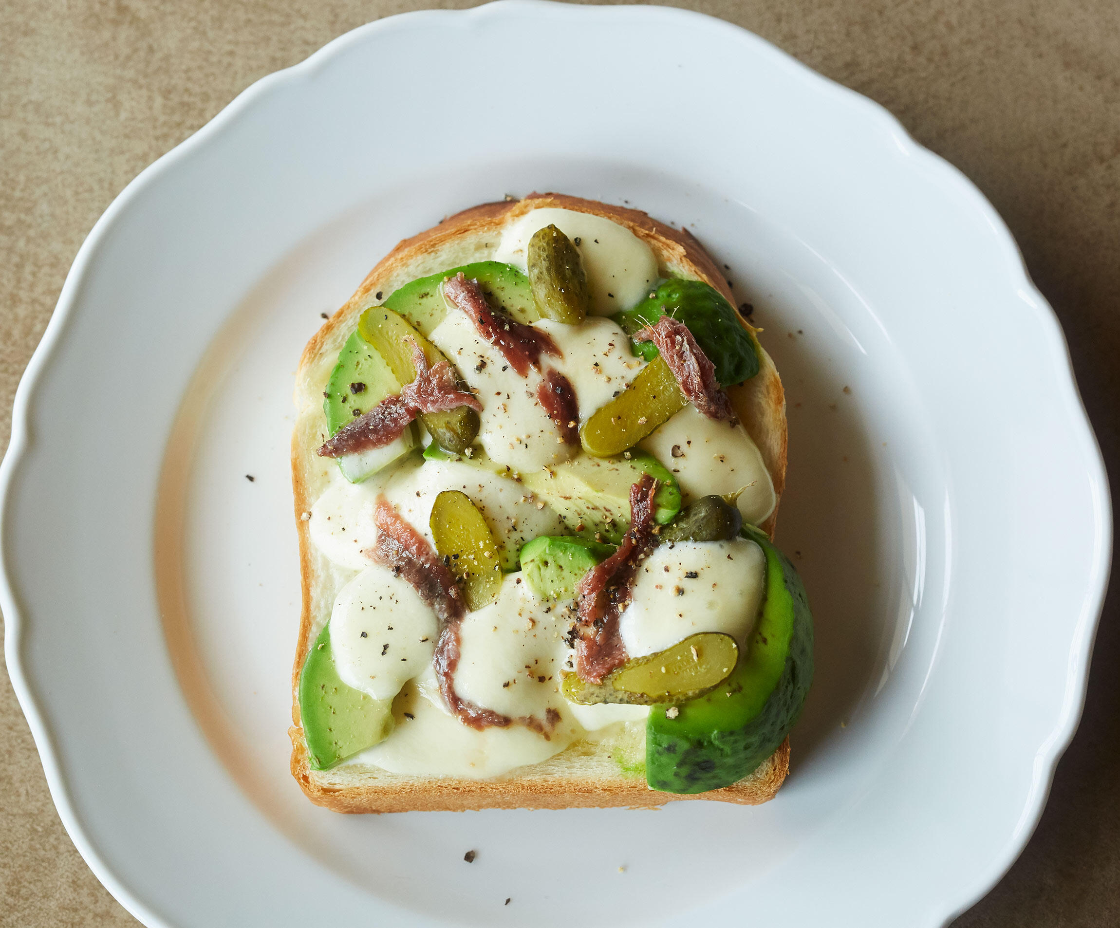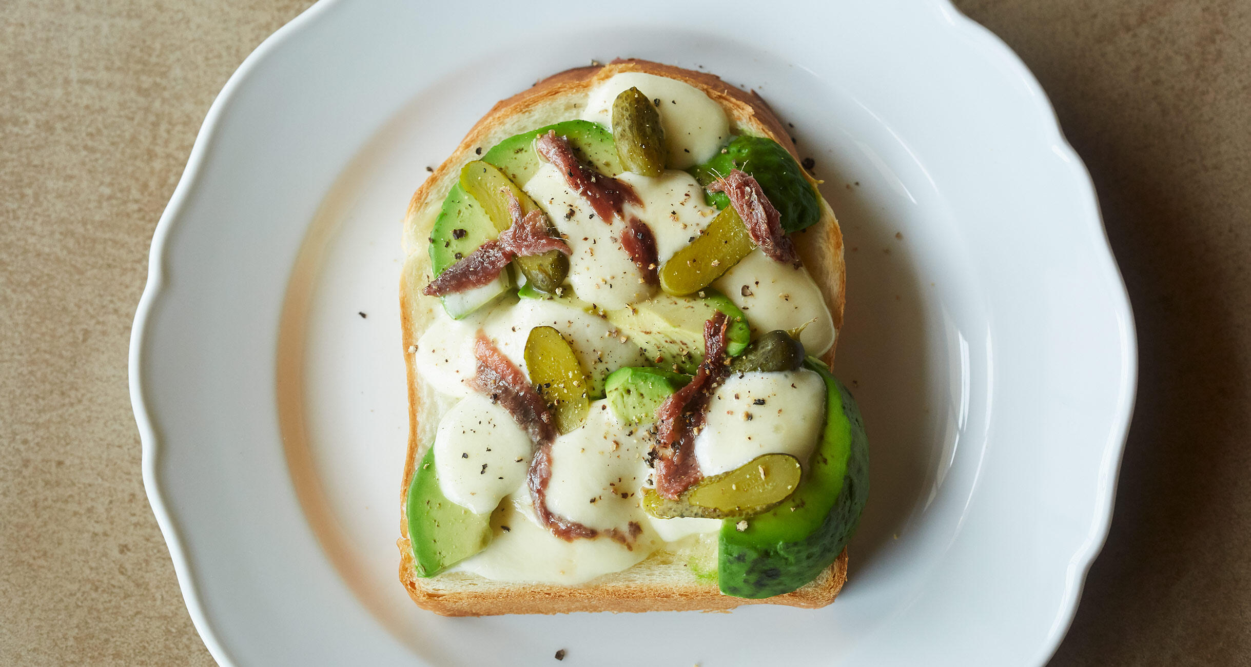 加熱してとろけたアボカドとモッツァレラチーズと、塩気のあるアンチョビが相性抜群。ボリューム感もあり、ピクルスの酸味も相まって、白ワインとよく合います。仕上げに胡椒もきかせたいパンを焼いて上にのっければ立派なごちそうの出来上がり。「なるほど、この手があったか!」と感じるレシピを料理家の飛田和緒さんに教えてもらいました。