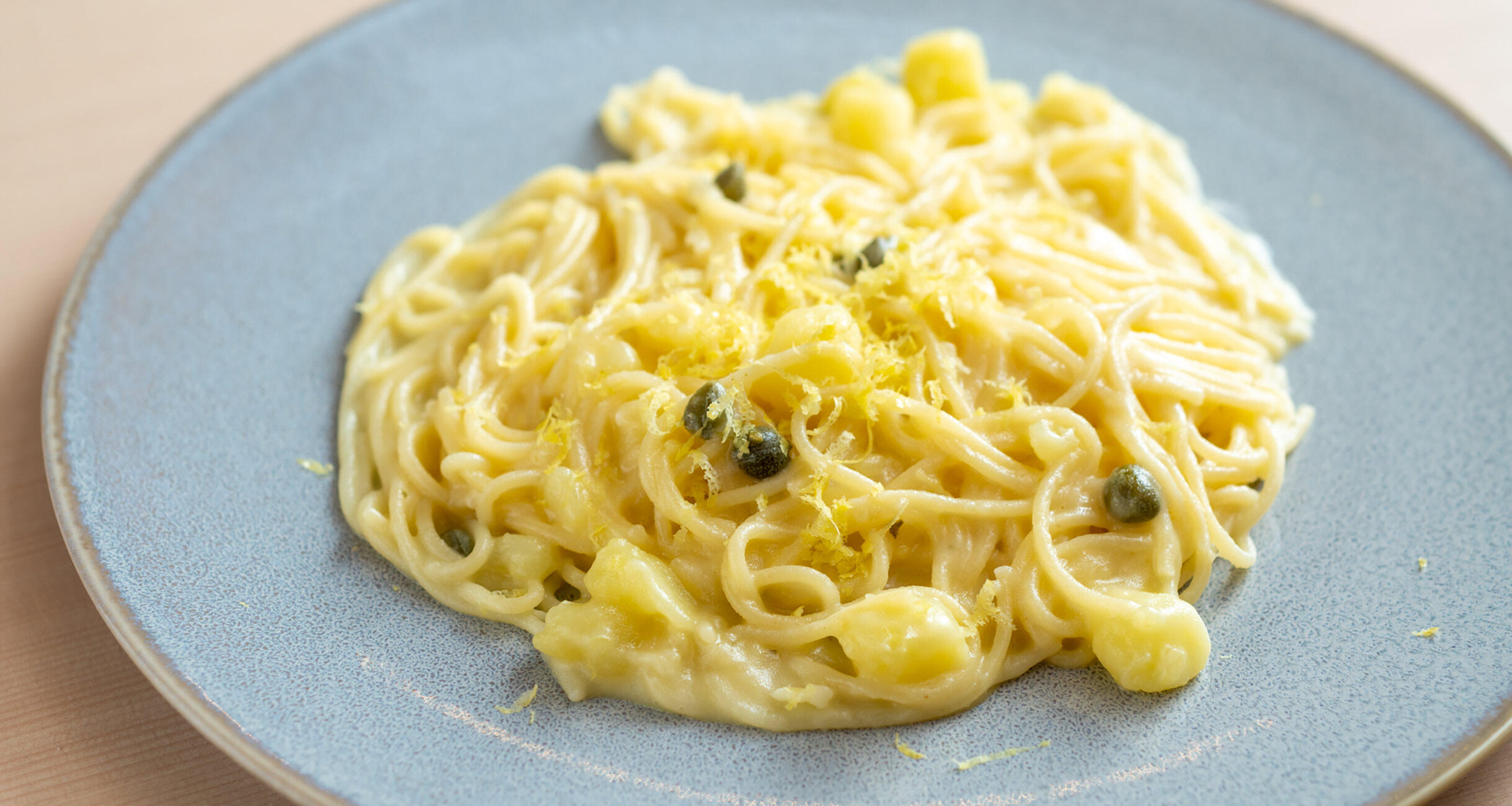 じゃがいもをソースのように使った、しっかりと食べ応えのあるパスタです。パスタが主食のデザイナー・ハヤシコウさんに、パパっとつくれるシンプルなパスタを習いました。この週末のランチにつくってみませんか?ハヤシさんのパスタは、優しい味わいなので、お好みで調味してみてください。