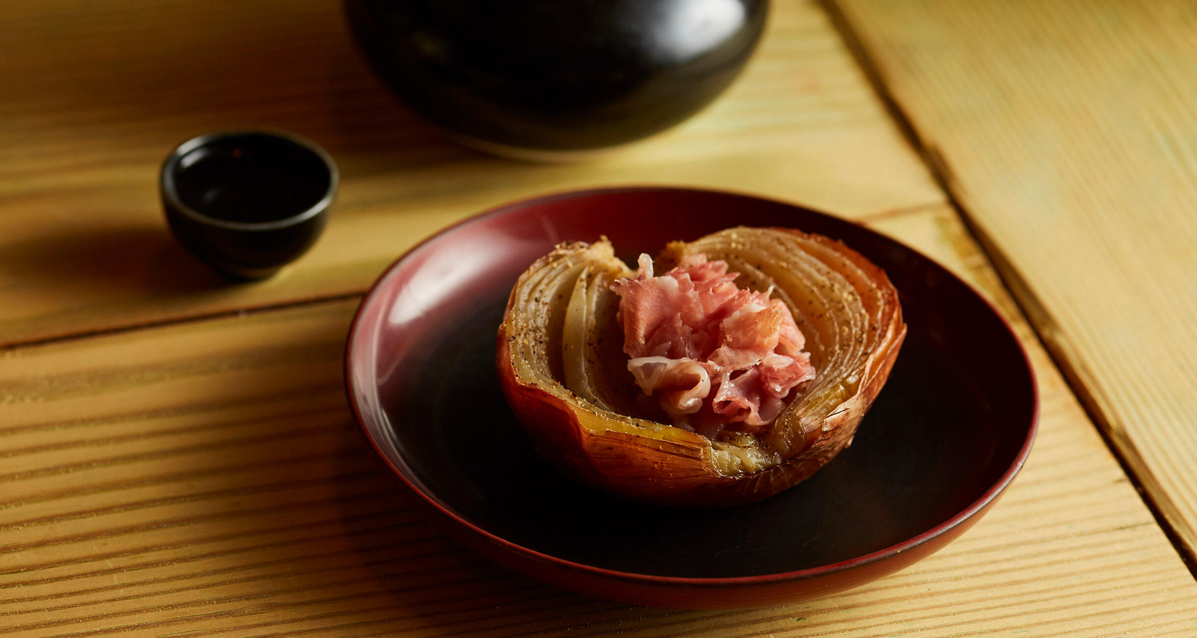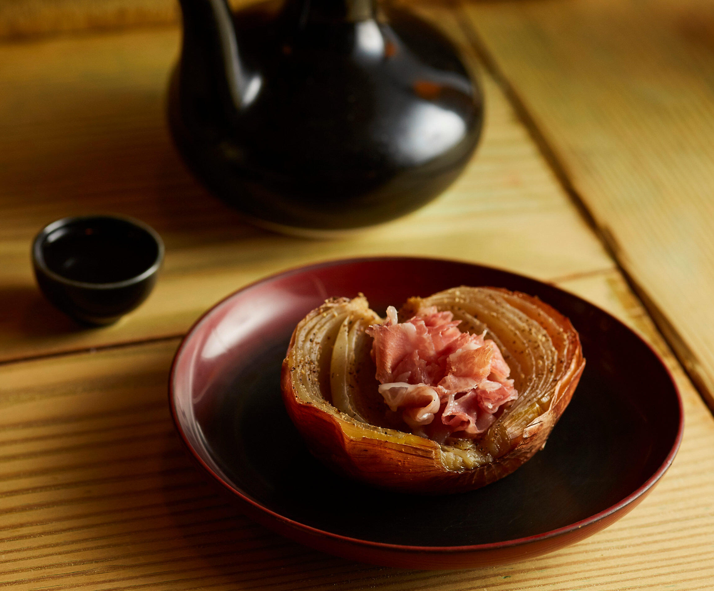 オーブンでじっくり低温焼きに。玉ねぎのピュアな甘さが直燗と好相性です。常備しておいて気が向いたら一杯、なんてときにぴったり!365日でも飽きない焼酎に合うおつまみを「赤坂まるしげ」店主に習いました。