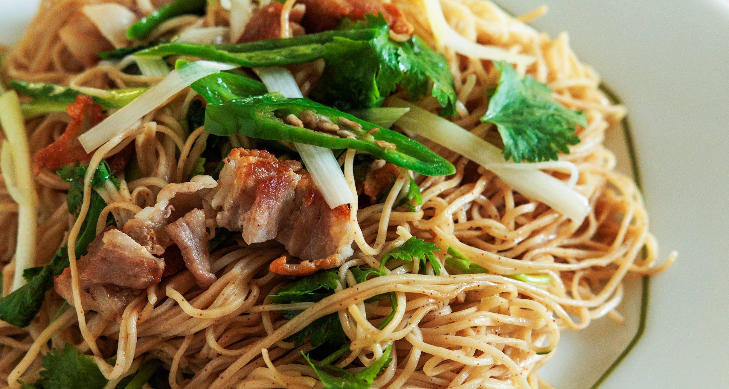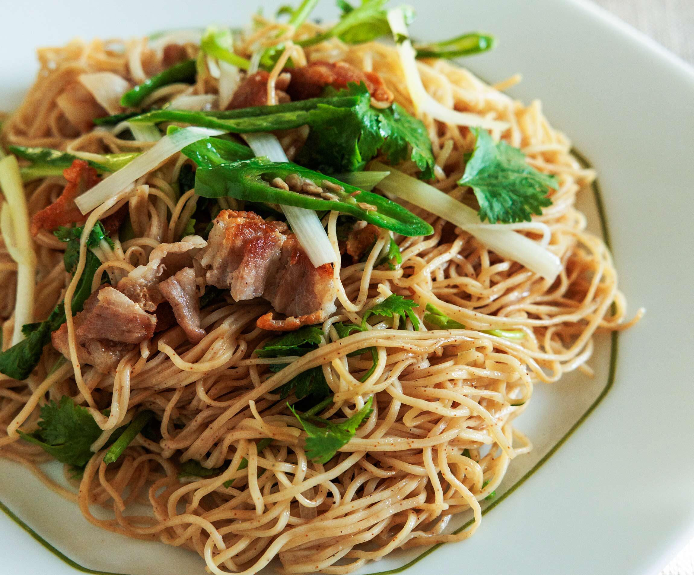 旨味の強い豚バラ薄切り肉と、長ねぎ、青唐辛子、香菜といった香味野菜を取り合わせた、香り高い焼きそば。酢をかけて食べるのもお薦め。喉ごしがよく、食材との相性も選びばない「香港的」焼きそばを、料理研究家の大庭英子さんに教えてもらいました。