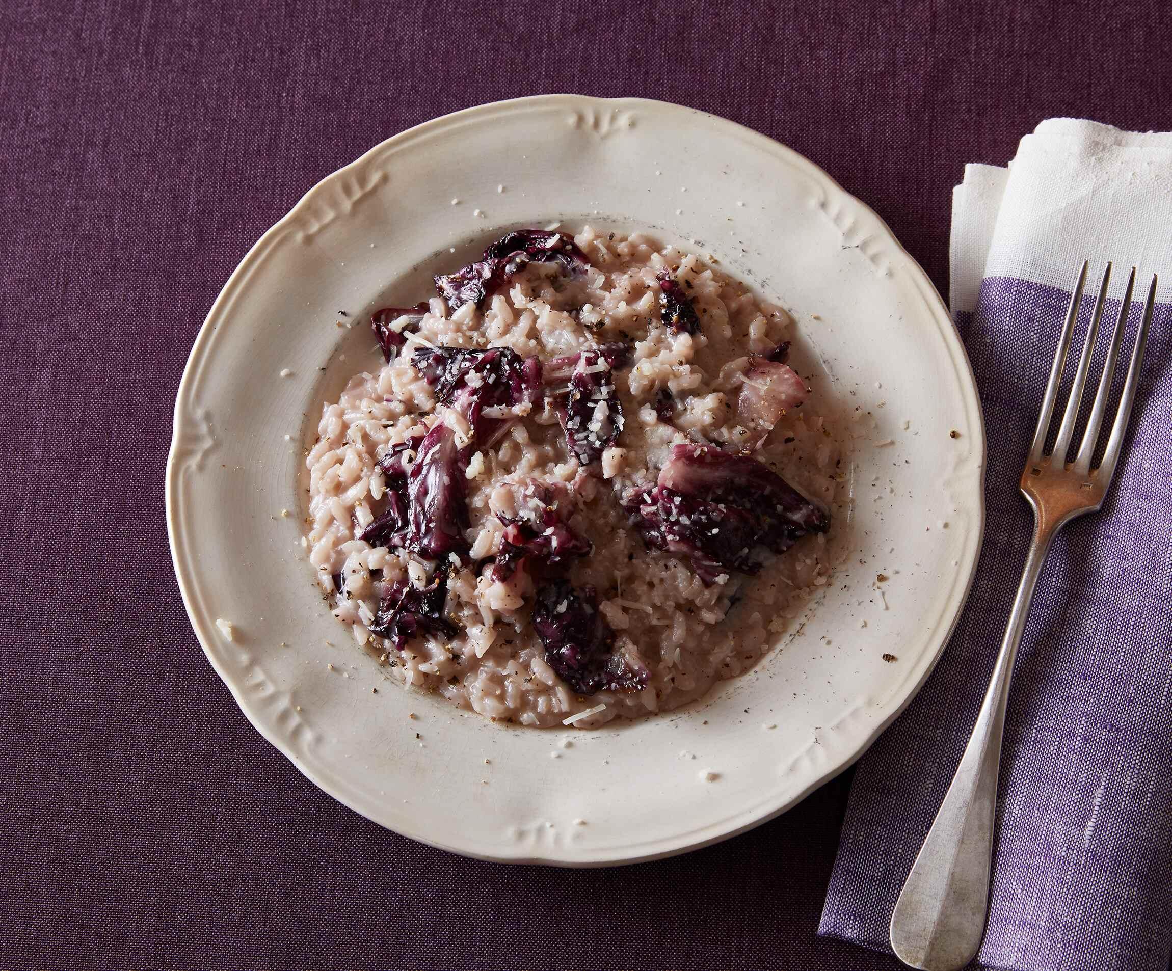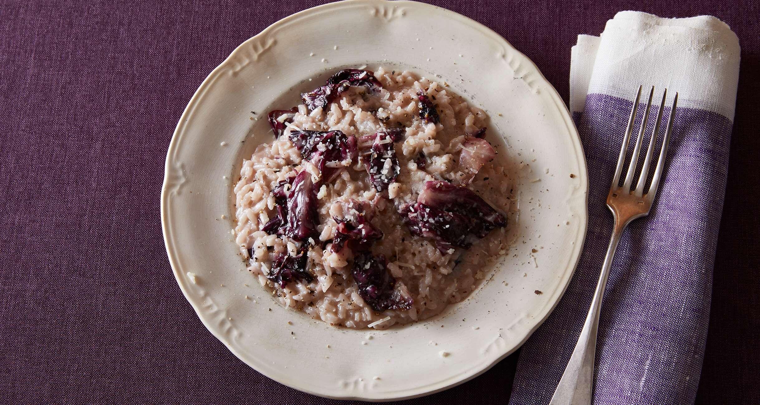冬はリゾットもよく食卓に登場。トレビスの穏やかな苦味と赤ワインの風味が大人の雰囲気を醸し出す一皿は、ヴェネトやフリウリ、トレンティーノなど北東部でおなじみの味。人が集まるときに人気のごちそうです。