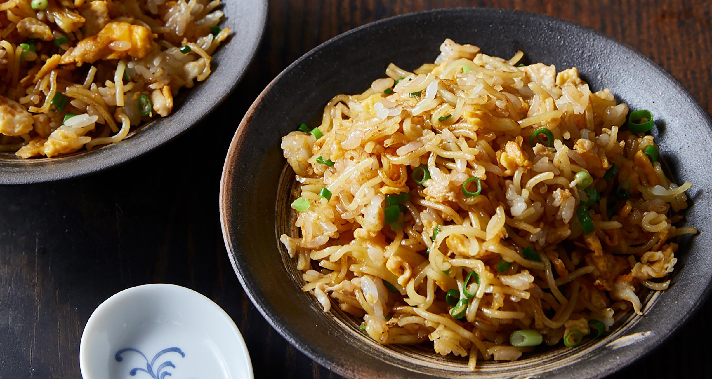 神戸生まれの下町の味をバター醤油味にアレンジ。卵たっぷりがうれしい。麺は油でコーティングされているからご飯にくっつくことなく失敗しにくい。