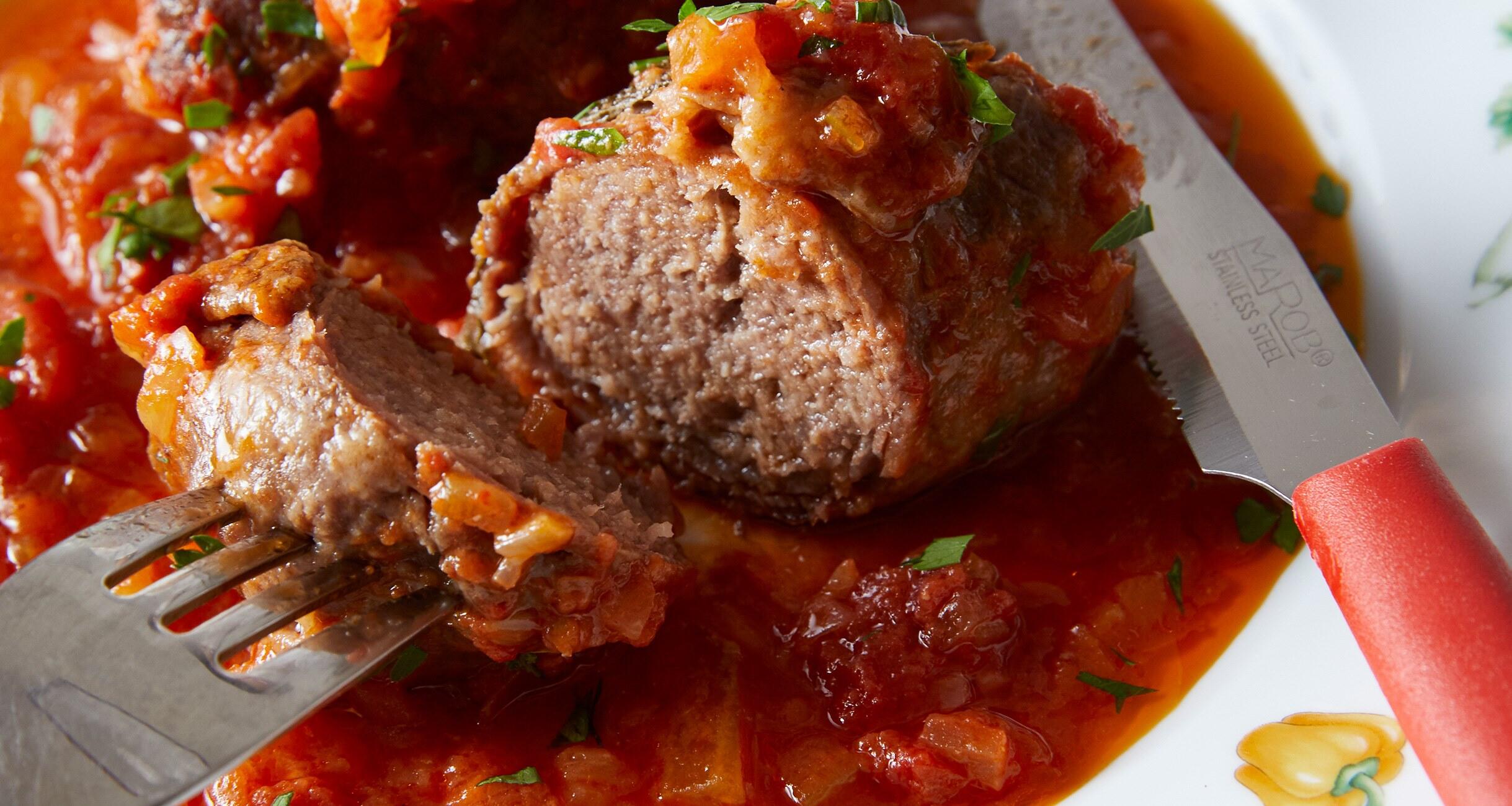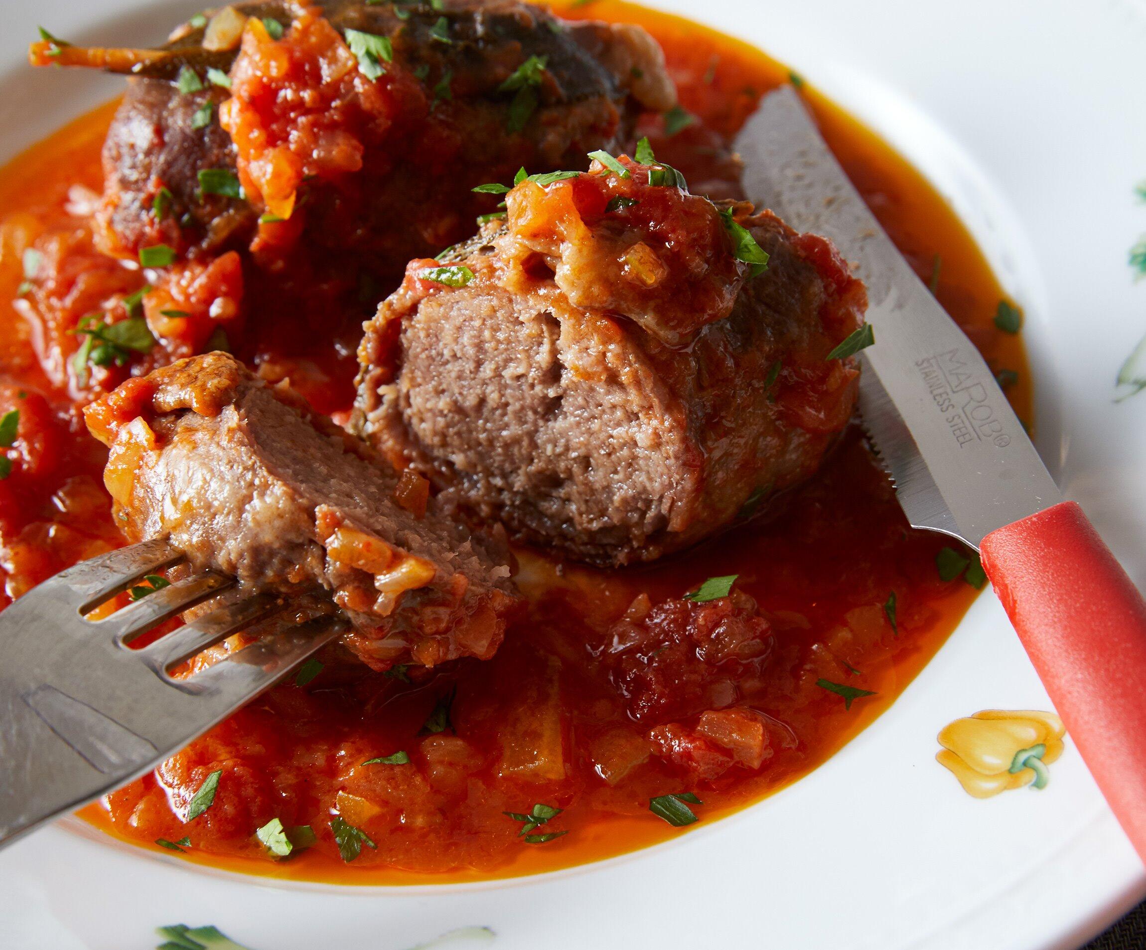 ポルペット(肉だんご)をそのまま焼いて煮るのではなく、さらに牛肉で巻いてから煮込みます。かの地のマダムに「ミラノではこれがポルペット」と教わった豪華版。軽いトマトソースでさっと煮るので、想像よりも軽やかな味わいです。