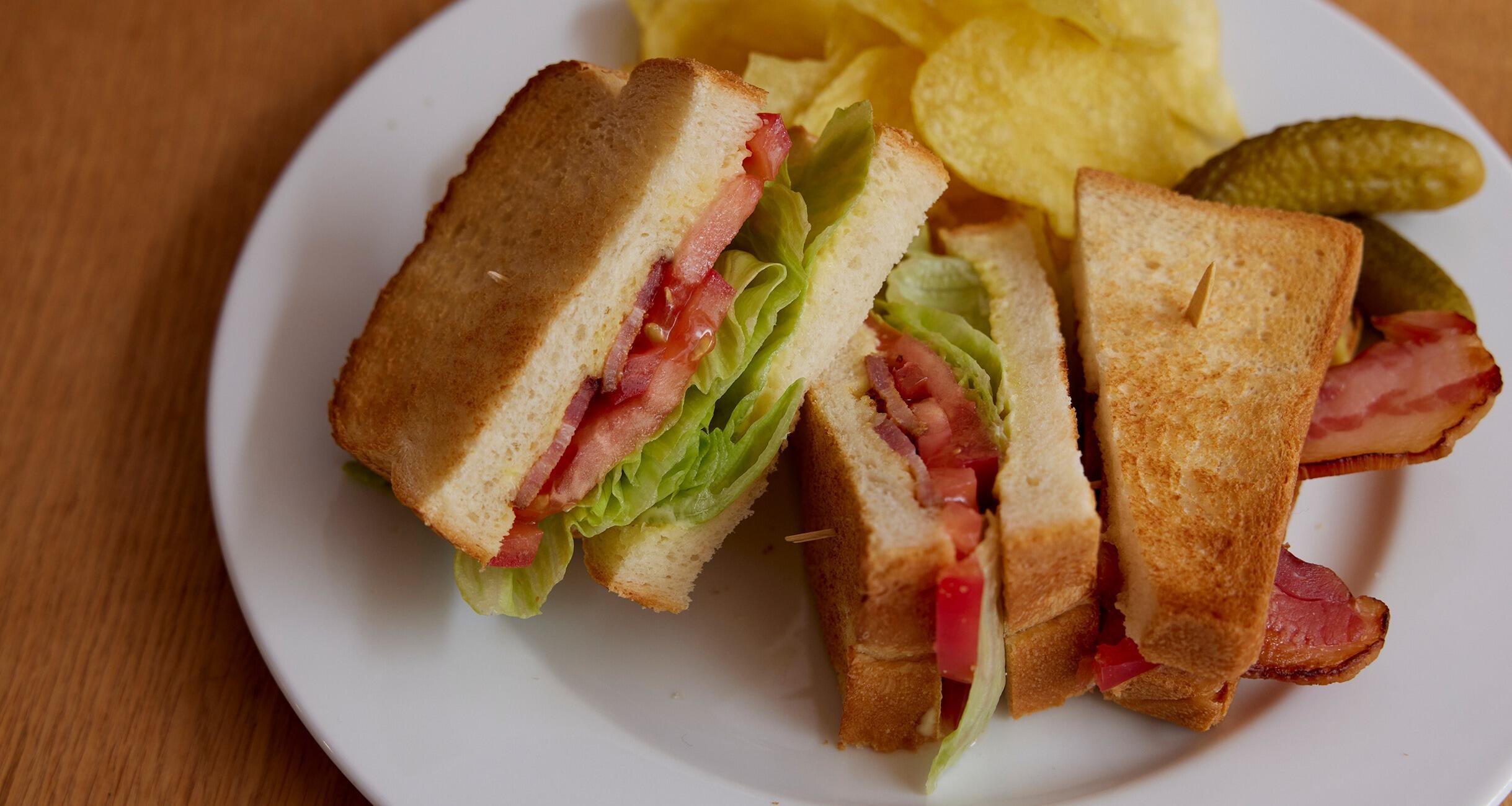 Bはベーコン、Lはレタス、Tはトマト。このトリオのおいしさは不滅。ベーコンは塊のものを買い求めて厚めに切り、カリッとするまで焼くのがお薦め。これでグンとパンチが出る。料理研究家で、代官山の洋食店のオーナーシェフでもある坂田阿希子さんに、本格的な洋食店のサンドイッチを教わりました。