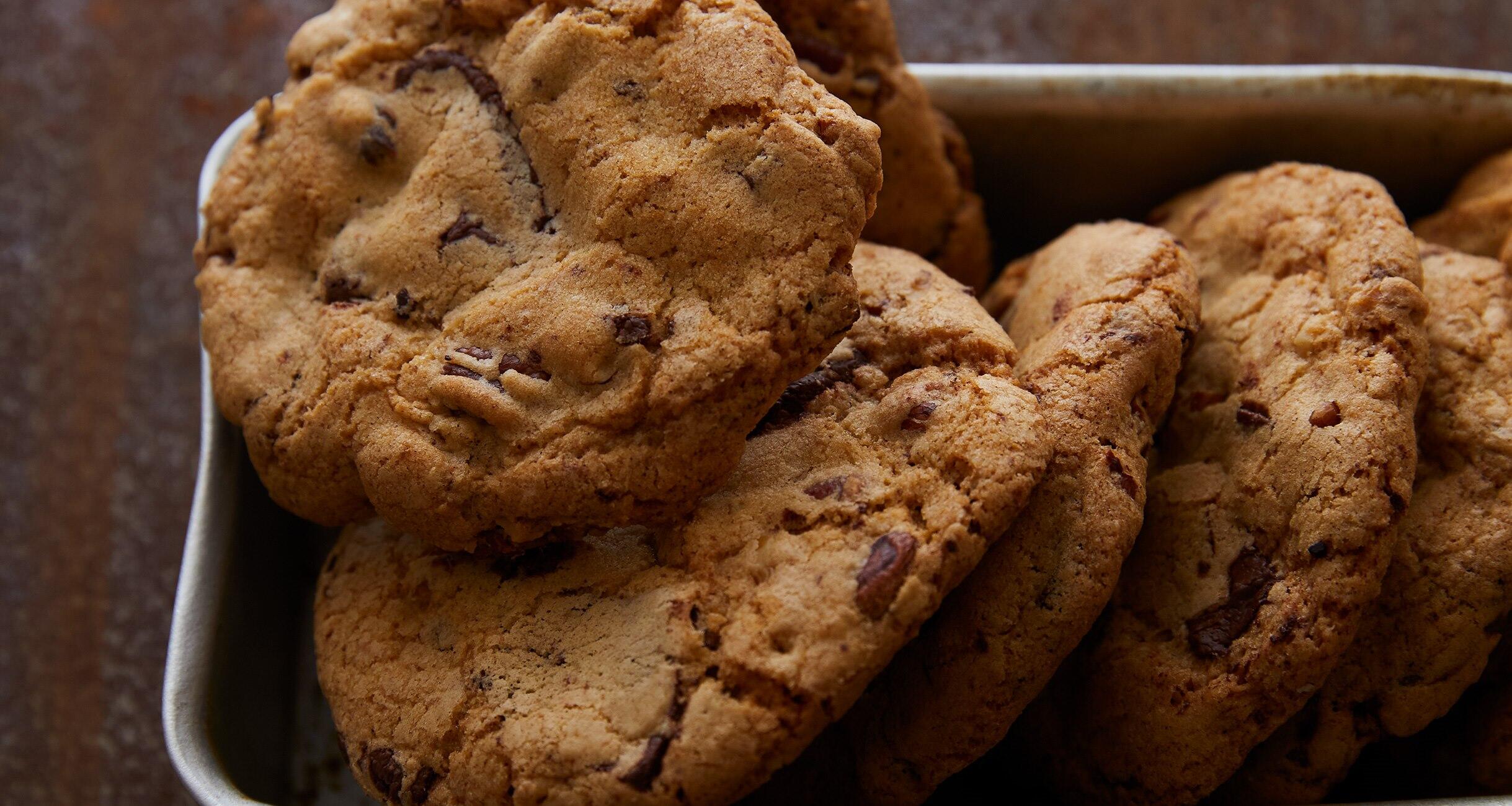 チョコレートとナッツをたっぷり入れた、大きなサイズのチョコチャンククッキーです。ホールケーキや蒸しケーキ、ゼリーやクッキー、チョコクリームサンドまで心がほっとするようなチョコレートのおやつを、料理研究家のムラヨシマサユキさんに教わりました。