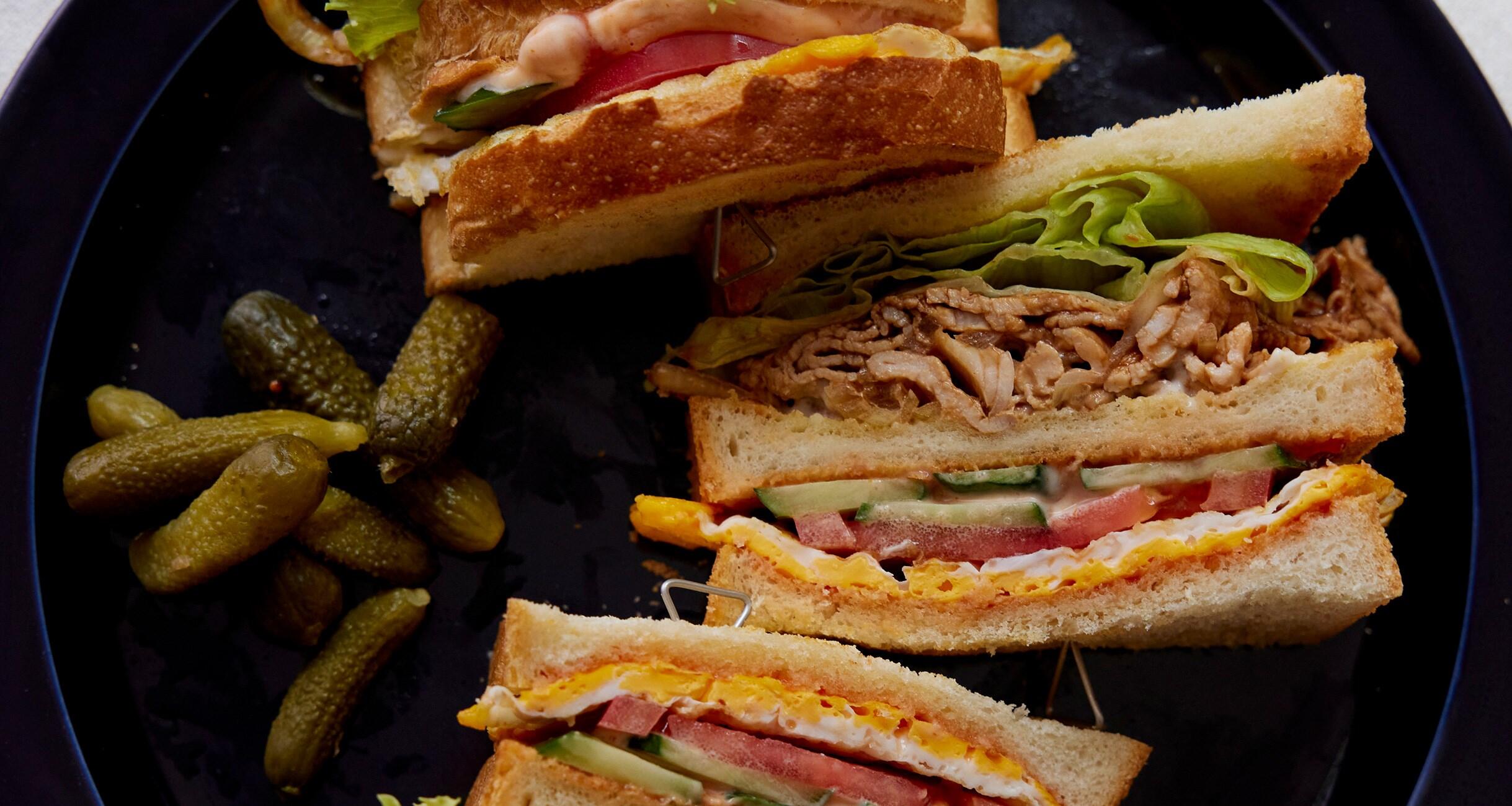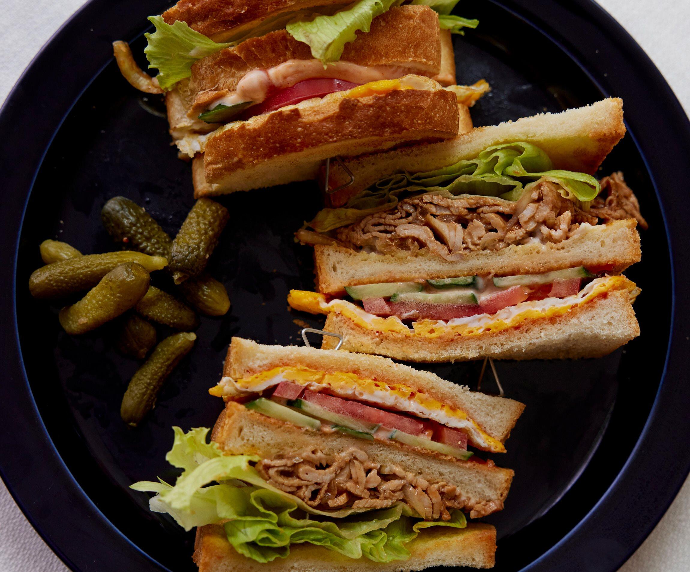 ソースでマリネした豚肉と玉ねぎ、シャキシャキの生野菜、両面焼きの目玉焼き、この組み合わせが絶妙!いろいろな味が融合したおいしさは、サンドイッチならでは。料理研究家で、代官山の洋食店のオーナーシェフでもある坂田阿希子さんに、本格的な洋食店のサンドイッチを教わりました。