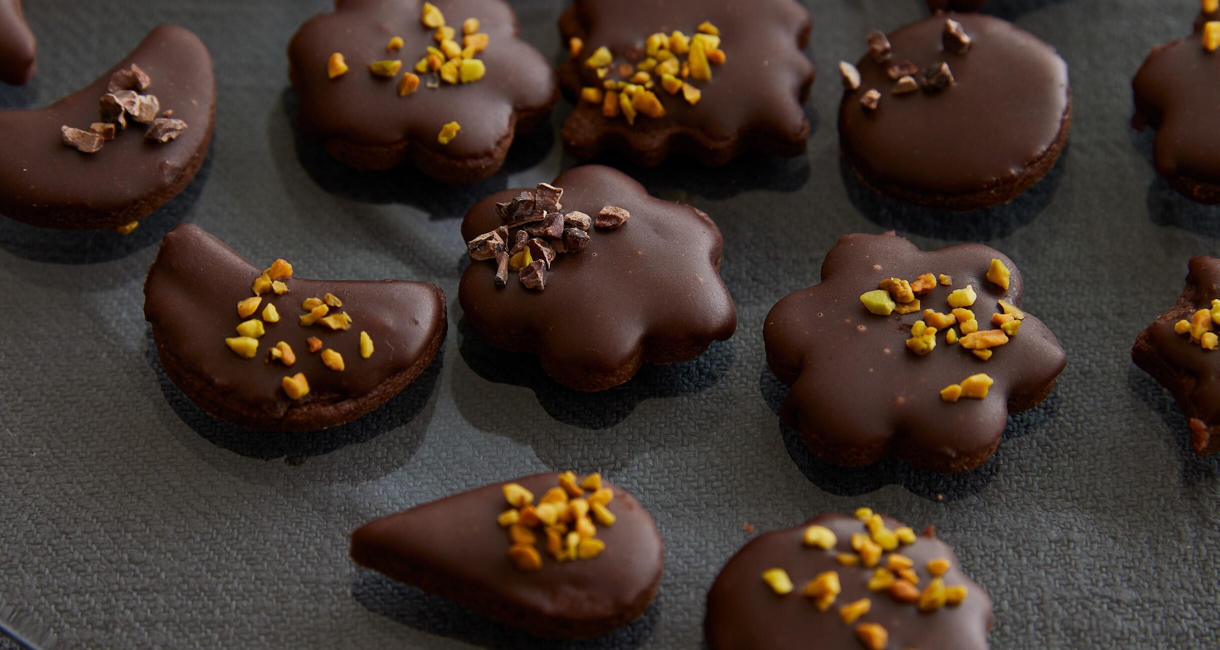カリッ、ポリッとした食感とアイシングの甘味がクセになる一口サイズのヨーチクッキーを、チョコクッキーとココアアイシングでつくります。ホールケーキや蒸しケーキ、ゼリーやクッキー、チョコクリームサンドまで心がほっとするようなチョコレートのおやつを、料理研究家のムラヨシマサユキさんに教わりました。