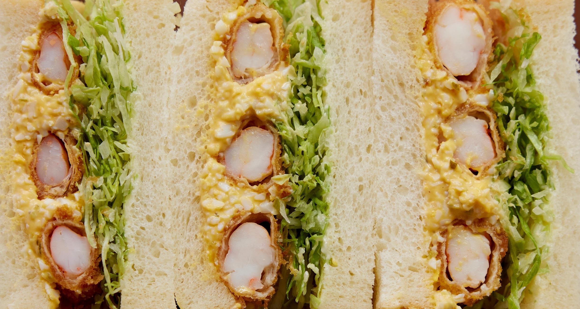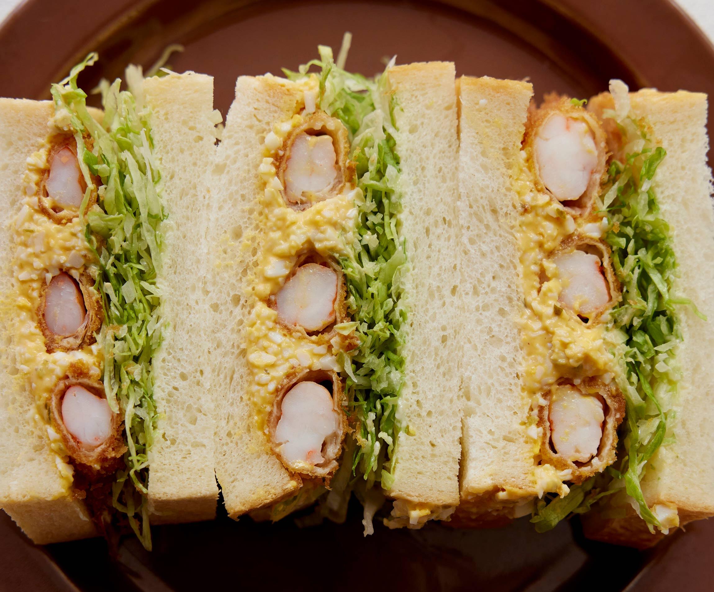 一口頬張れば、衣はサクッ、海老はプリプリ!パンに塗ったレモンバターの風味や自家製タルタルソースのおいしさと重なって至福のサンドイッチになる。料理研究家で、代官山の洋食店のオーナーシェフでもある坂田阿希子さんに、本格的な洋食店のサンドイッチを教わりました。