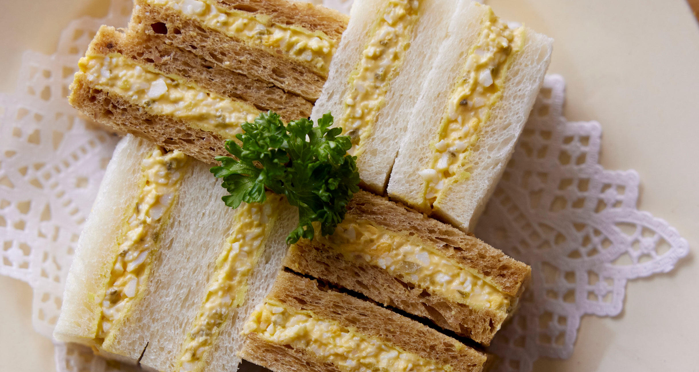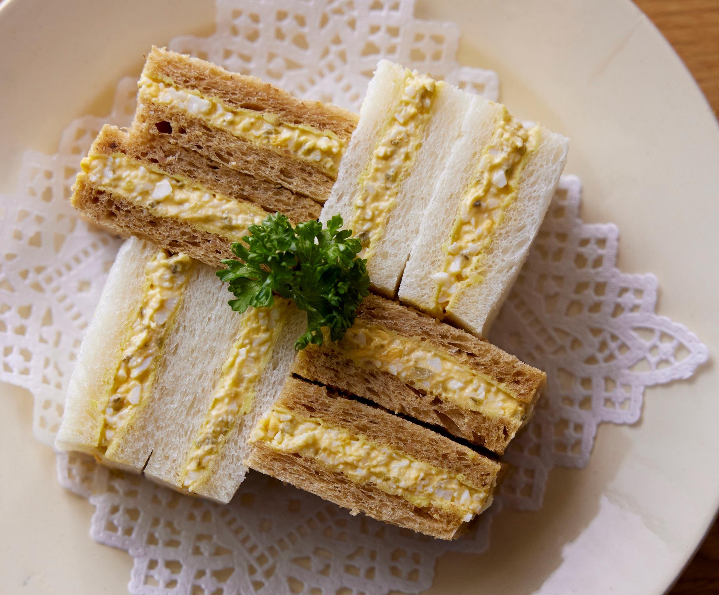 ピクルスをたっぷり入れた卵フィリングをふんわり食パンでサンドした、卵サンドの決定版。おいしさの秘密はゆで卵の黄身と白身の扱い方にあり。そこさえマスターすれば、ワンランク上のおいしさになる。料理研究家で、代官山の洋食店のオーナーシェフでもある坂田阿希子さんに、本格的な洋食店のサンドイッチを教わりました。