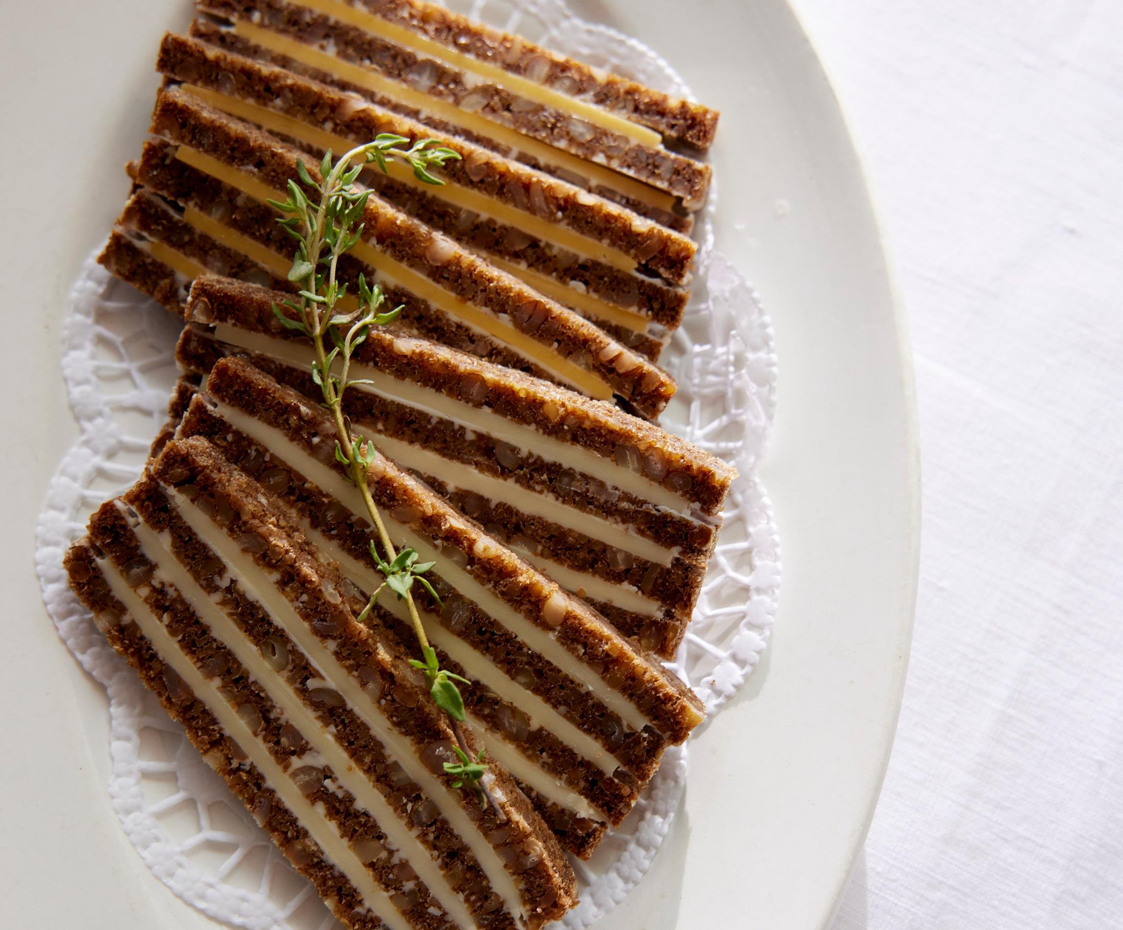 チーズとドイツパンを層にして仕上げた、オードブルサンド。ドイツパンの独特の酸味と深い味わい、チーズのコクと塩気、ひと塗りしたバターのコンビネーションが絶妙だ。料理研究家で、代官山の洋食店のオーナーシェフでもある坂田阿希子さんに、本格的な洋食店のサンドイッチを教わりました。