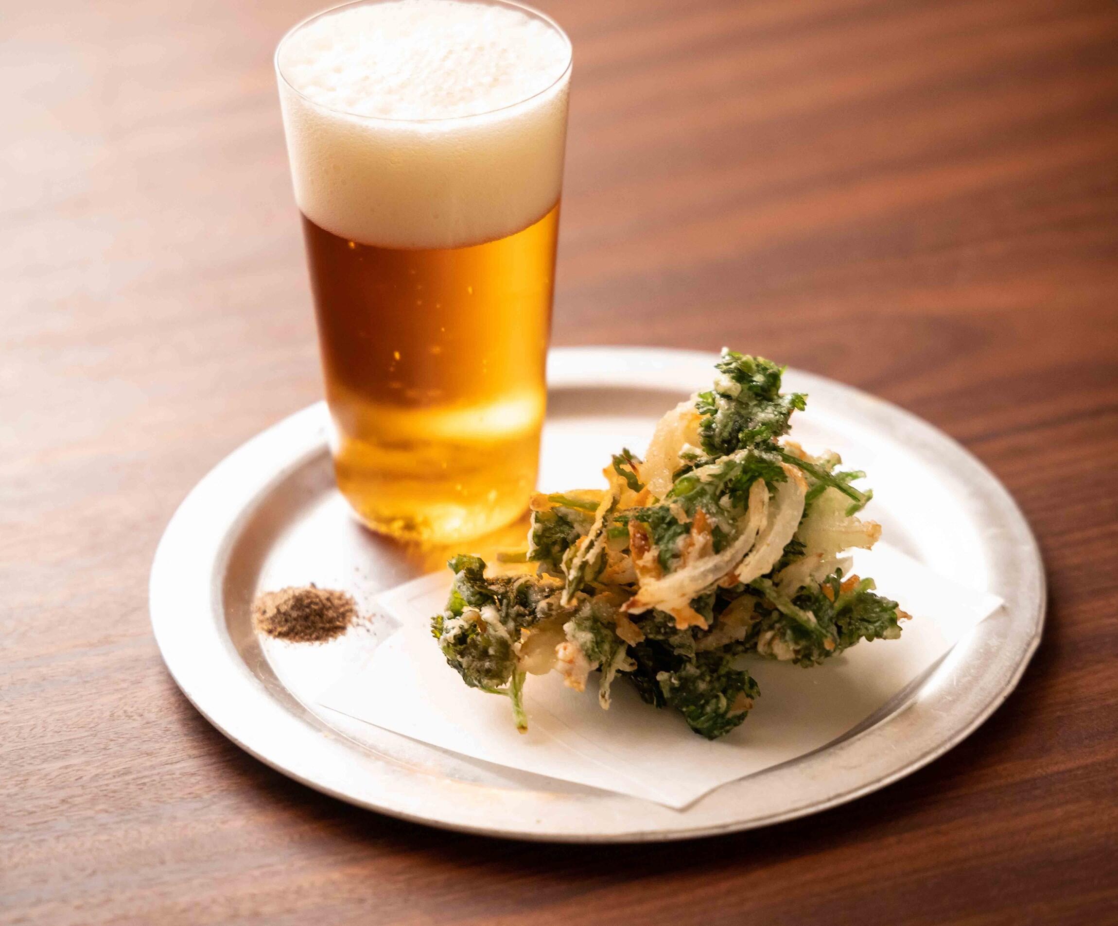 パクチーは好き嫌いがありますが、お好きな方はたっぷり使ってください。油と相性が良く、根っこを入れるとさらに香りが増します。ビールがぴったりで、エスニックなかき揚げなのでフレーバービールもいいですね。柑橘の爽やかな香りと苦味が感じられ、揚げ物の油をさっぱりとリセットしてくれます。