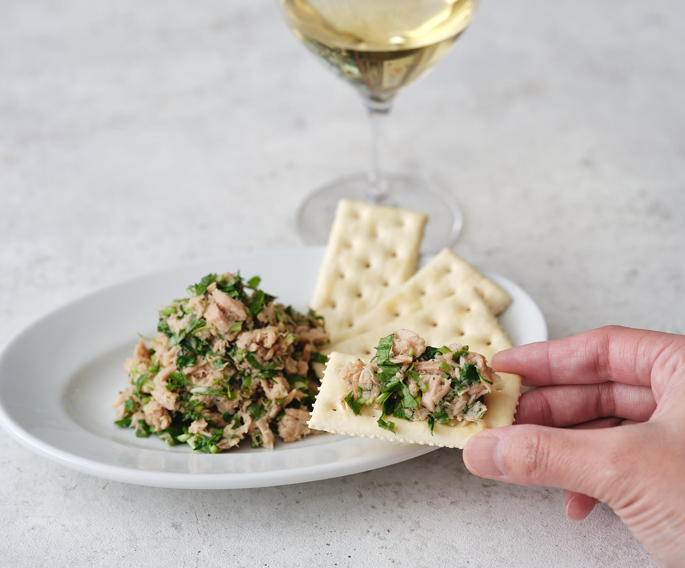 クラッカー以外の材料をすべて混ぜて器に盛り、クラッカーを添える。