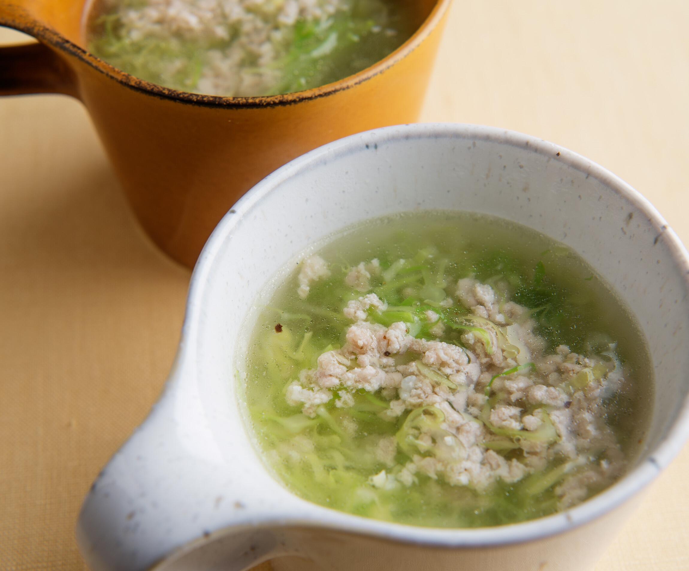 鶏挽き肉のいい味が出たところにキャベツ投入。素材の旨味を丸ごといただきます。
