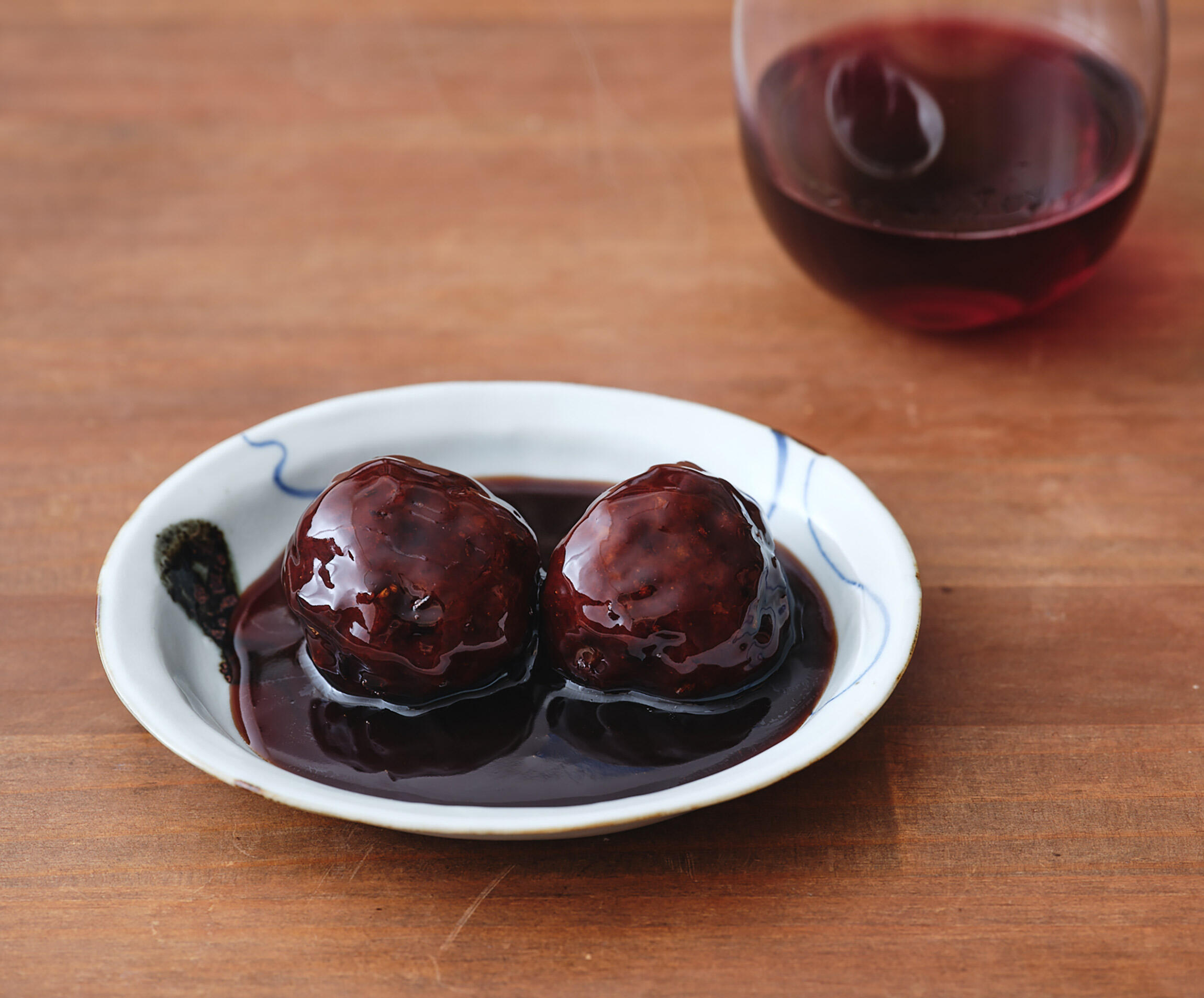 酸味のあるカラメル色のたれがとろりと肉だんごにからむ。表面はカリッと、中からは肉汁がジュワリ。赤ワインの酸味とコクが詰まったたれにはやっぱり赤ワインを合わせたい。