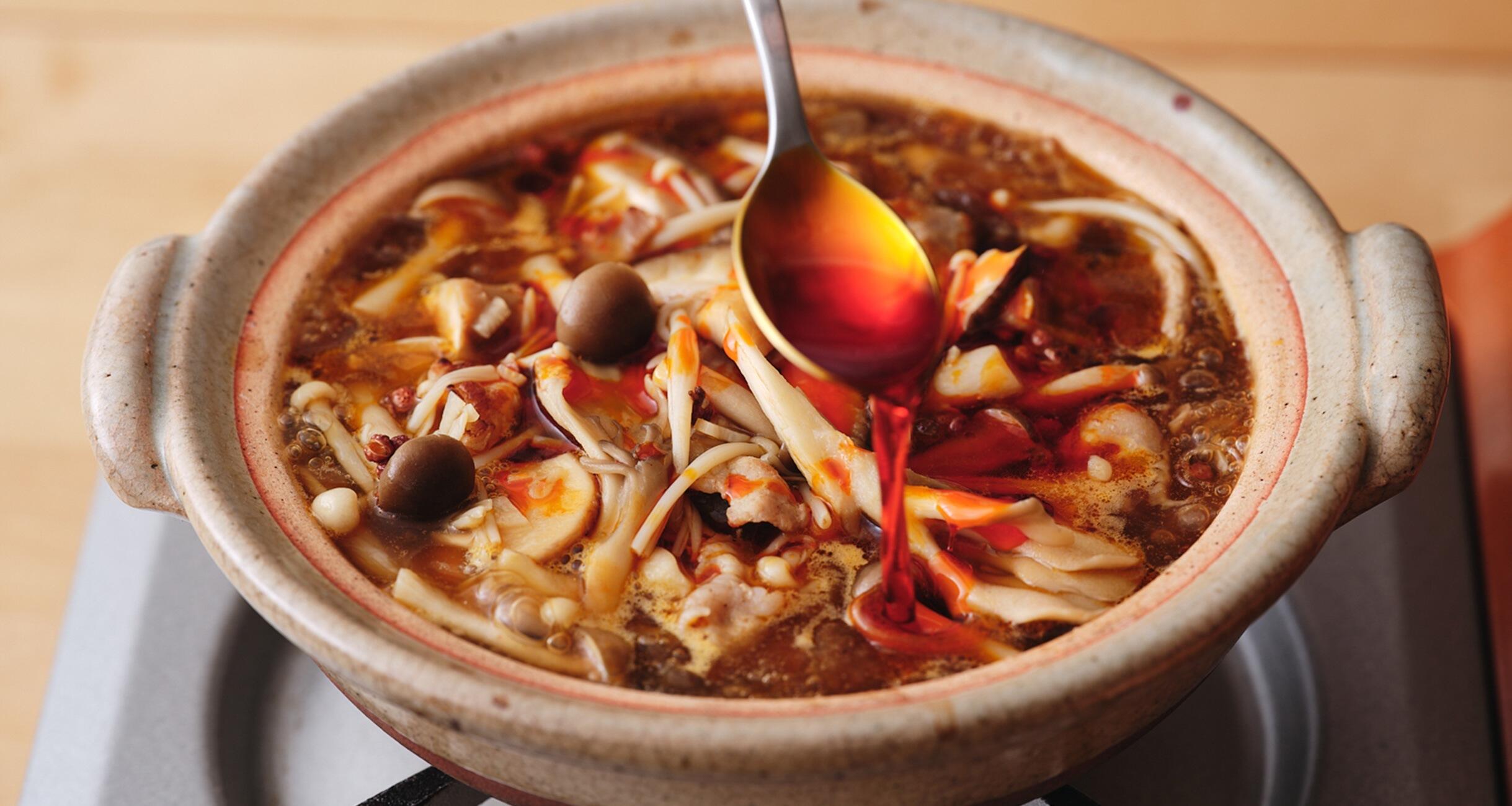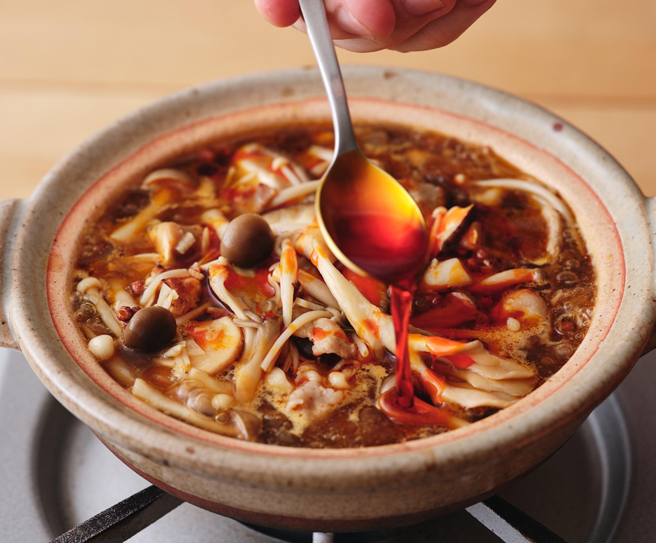 ラー油の辛味と花椒のしびれ感で体が熱くなる。きのこと豚肉の旨味でスープに奥行きのある味。少人数分ささっとつくれるのもうれしい。