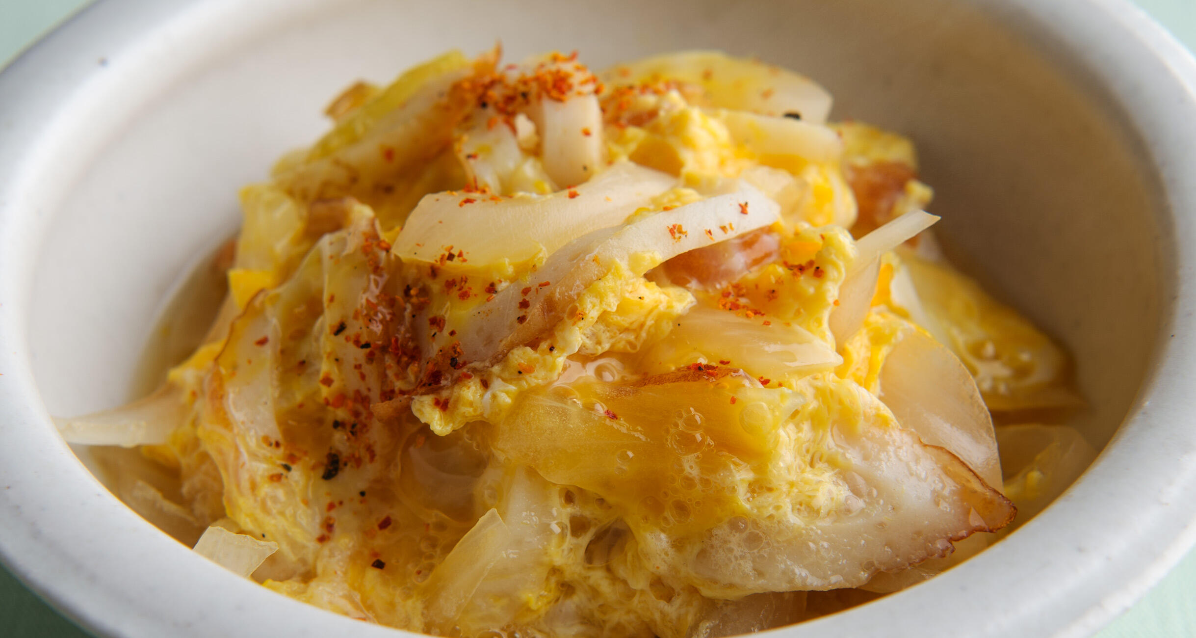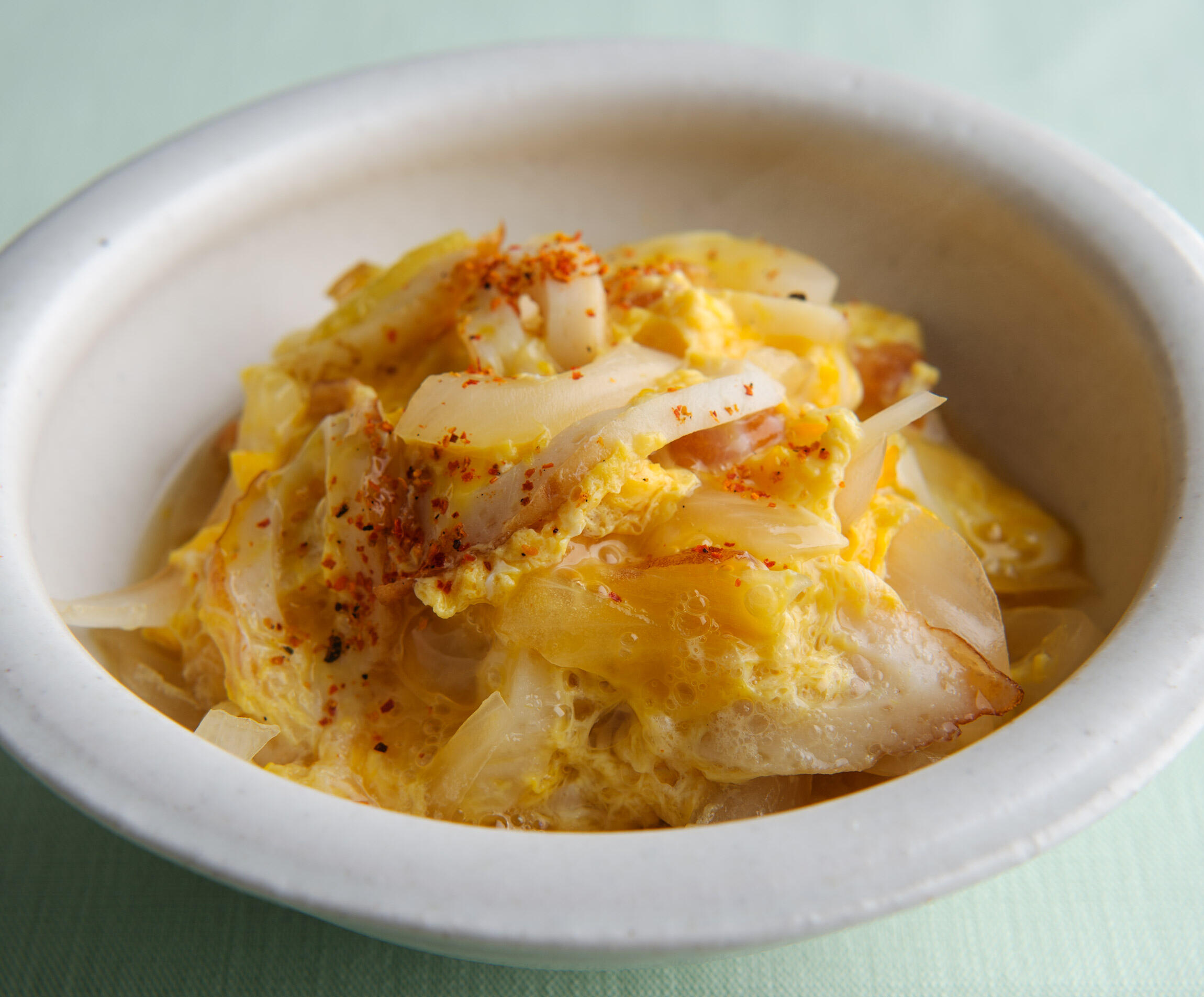 ちくわから出るだしを玉ねぎに含ませてから卵でとじます。淡い春色のおかずはそのままでも、ご飯にのせれば春のどんぶりとしても活躍します。