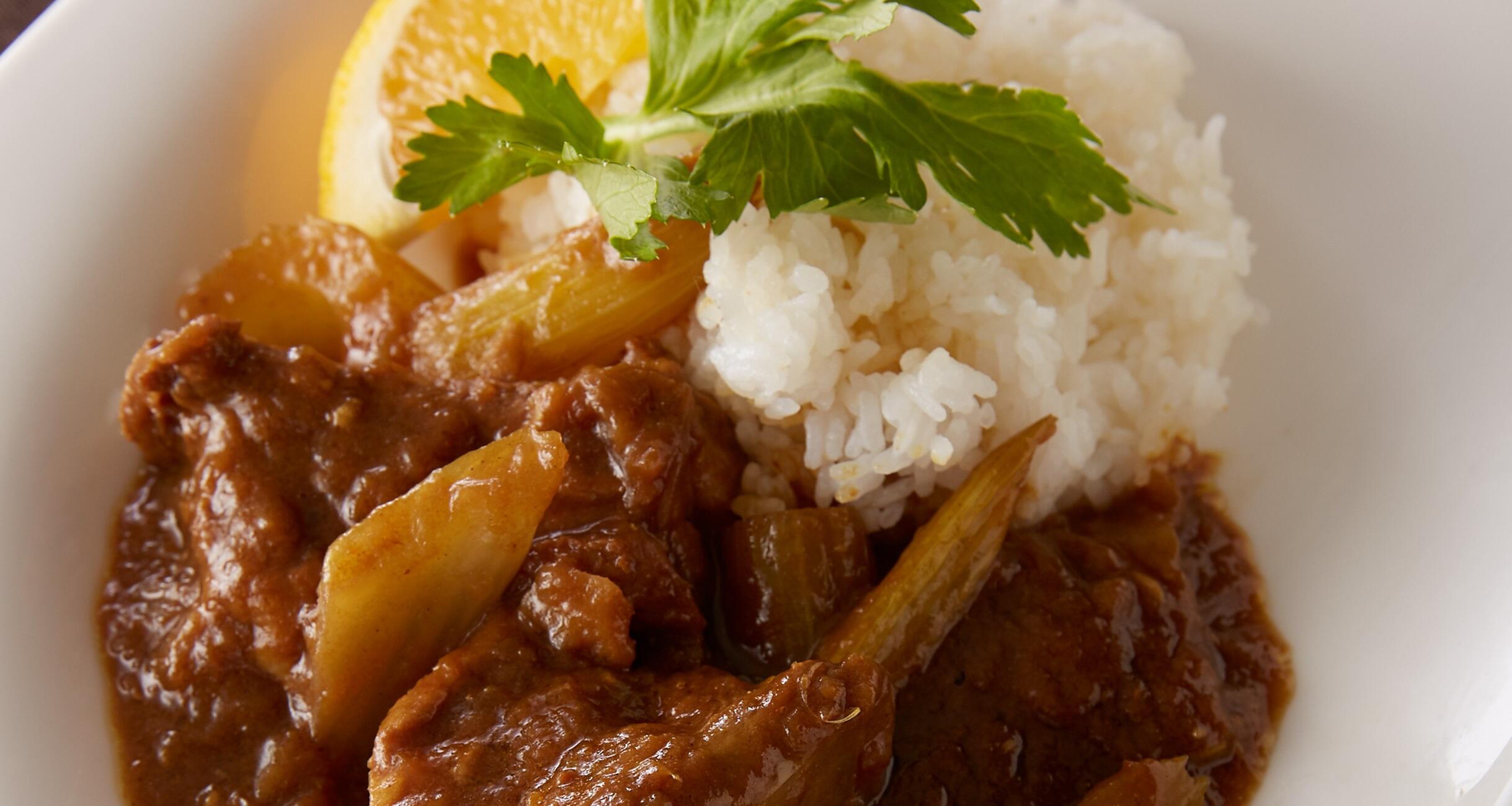ボリューム満点!スペアリブと柑橘の苦味が相まったビターな大人カレーです。いつものルウと材料で、家カレーを数段グレードアップさせるレシピを料理研究家の上田淳子さんに教わりました。