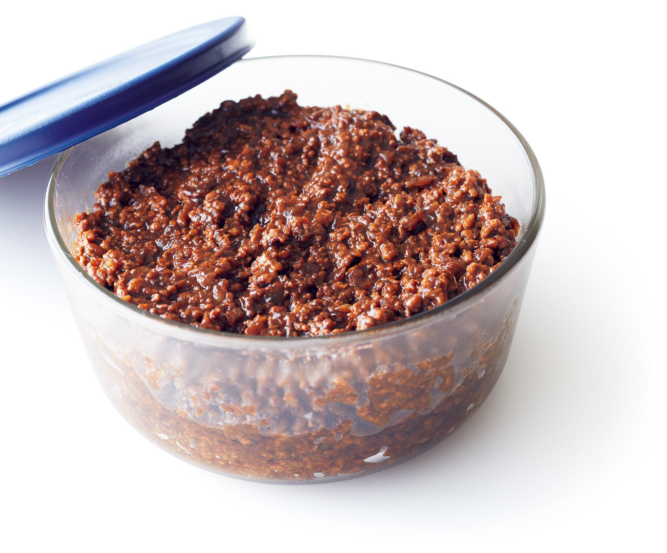 調味料の合わせ技で、甘辛味の濃厚な味わいに。まずはシンプルに炊きたてのご飯にのせて召し上がれ。保存容器に入れて冷蔵庫で4~5日間保存が可能です。