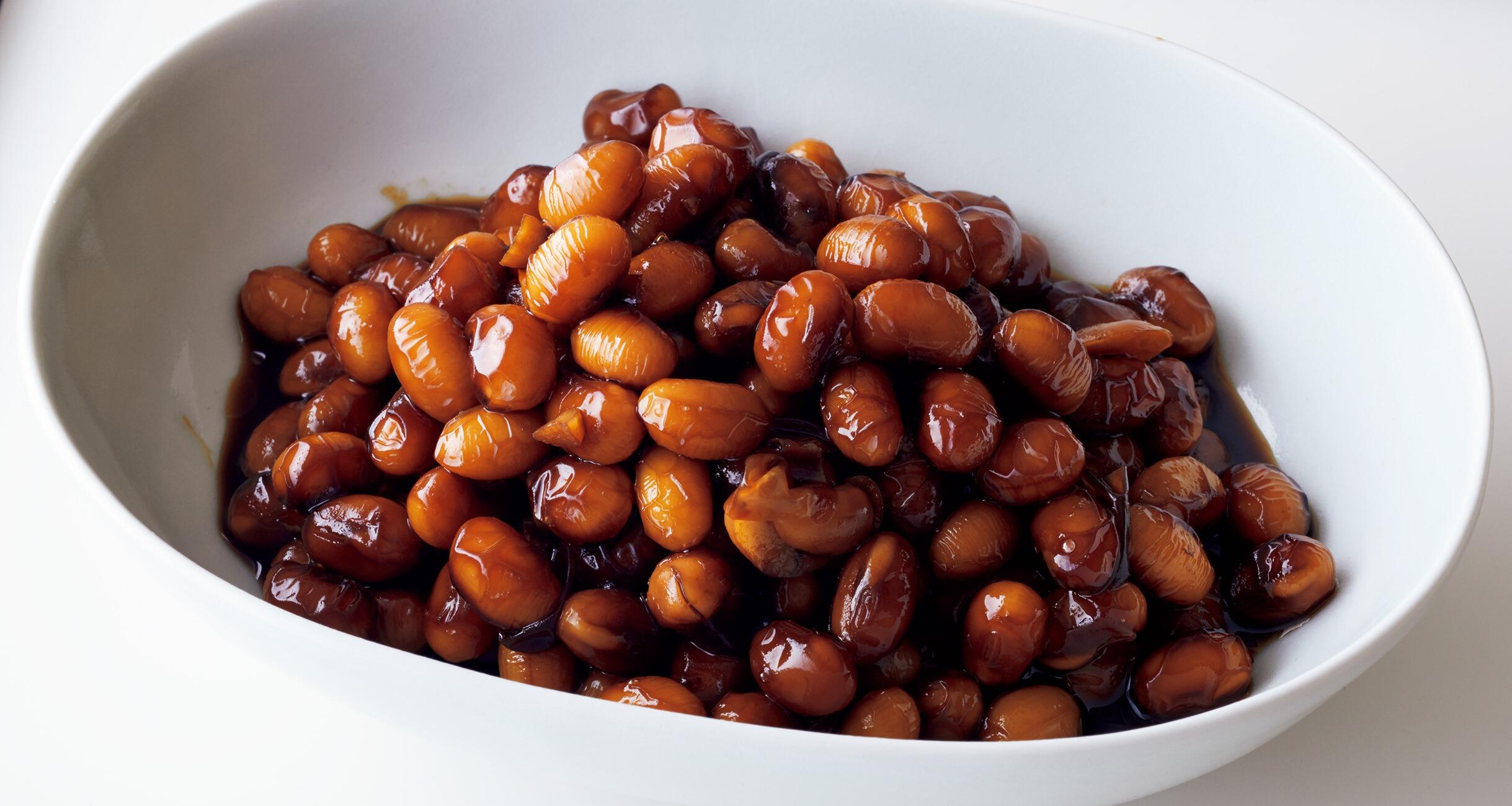 ほんのり甘く、黒糖を使った大豆の煮豆は風味が生き生き、食感はもっちり。