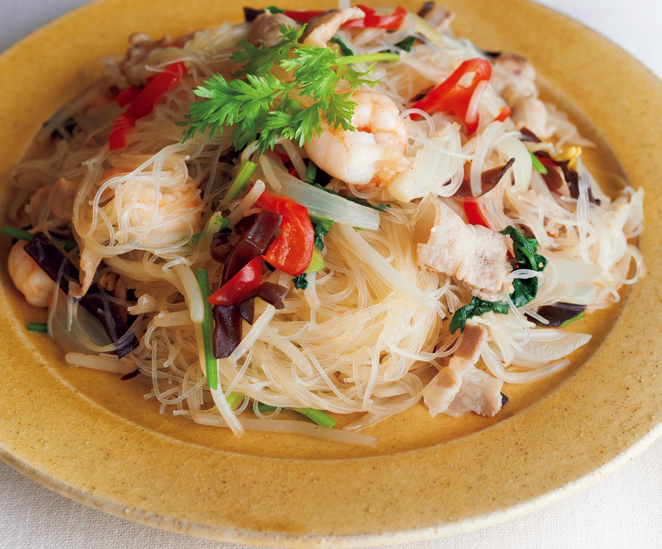 豚肉、海老の旨味をビーフンにしっかりしみ込ませてください。