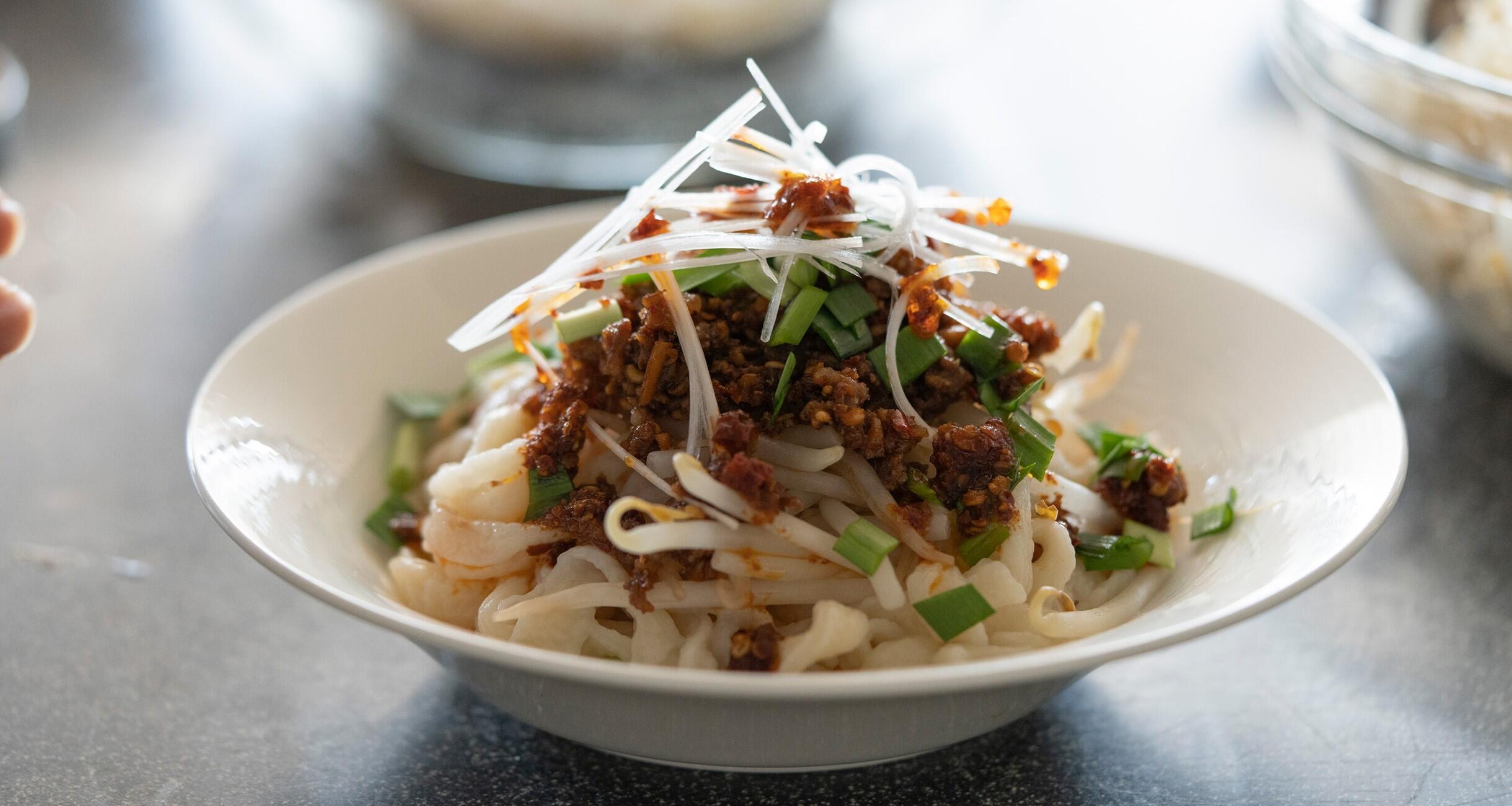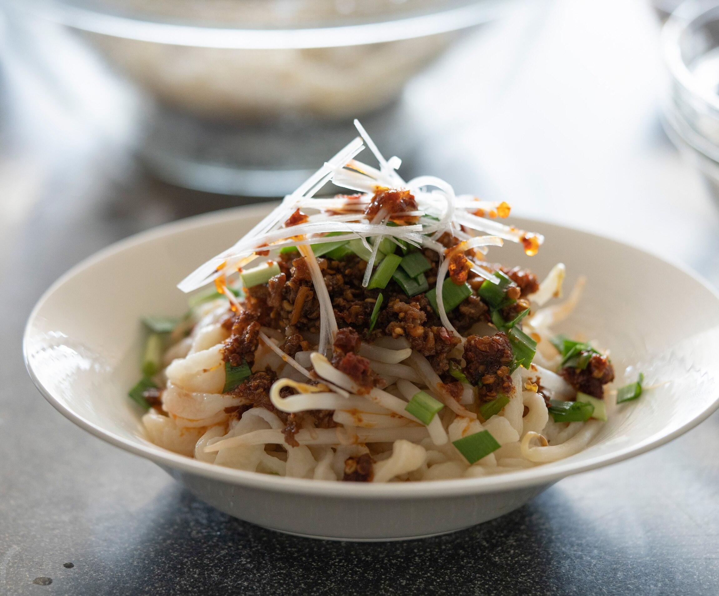 材料も少なくてまな板でつくれる、麺。実は、慣れればそう難しくないのです。豆板醤と合わせると、やみつきのおいしさ!