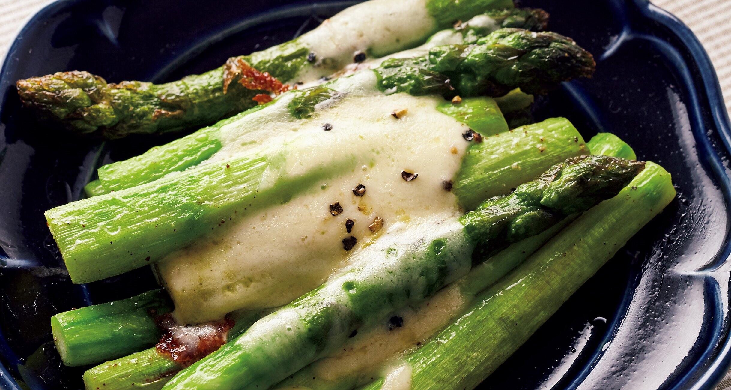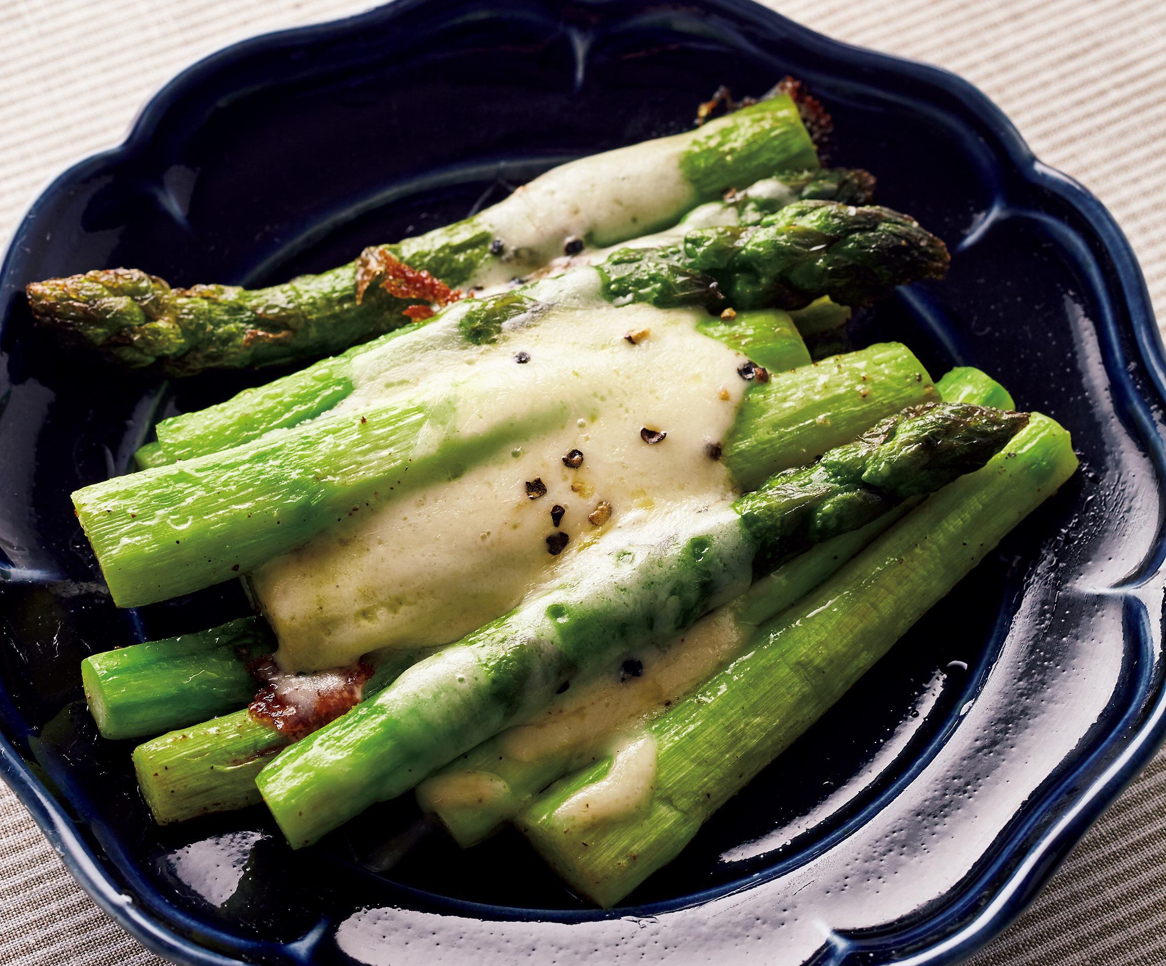アスパラガスの甘味とチーズの塩気がよくなじんで、満足感の高い副菜に仕上がります。おかずとしてはもちろん、ワインのお供にも。食材と塩を使いこなす基本レシピを、料理研究家の大庭英子さんに教えてもらいました。